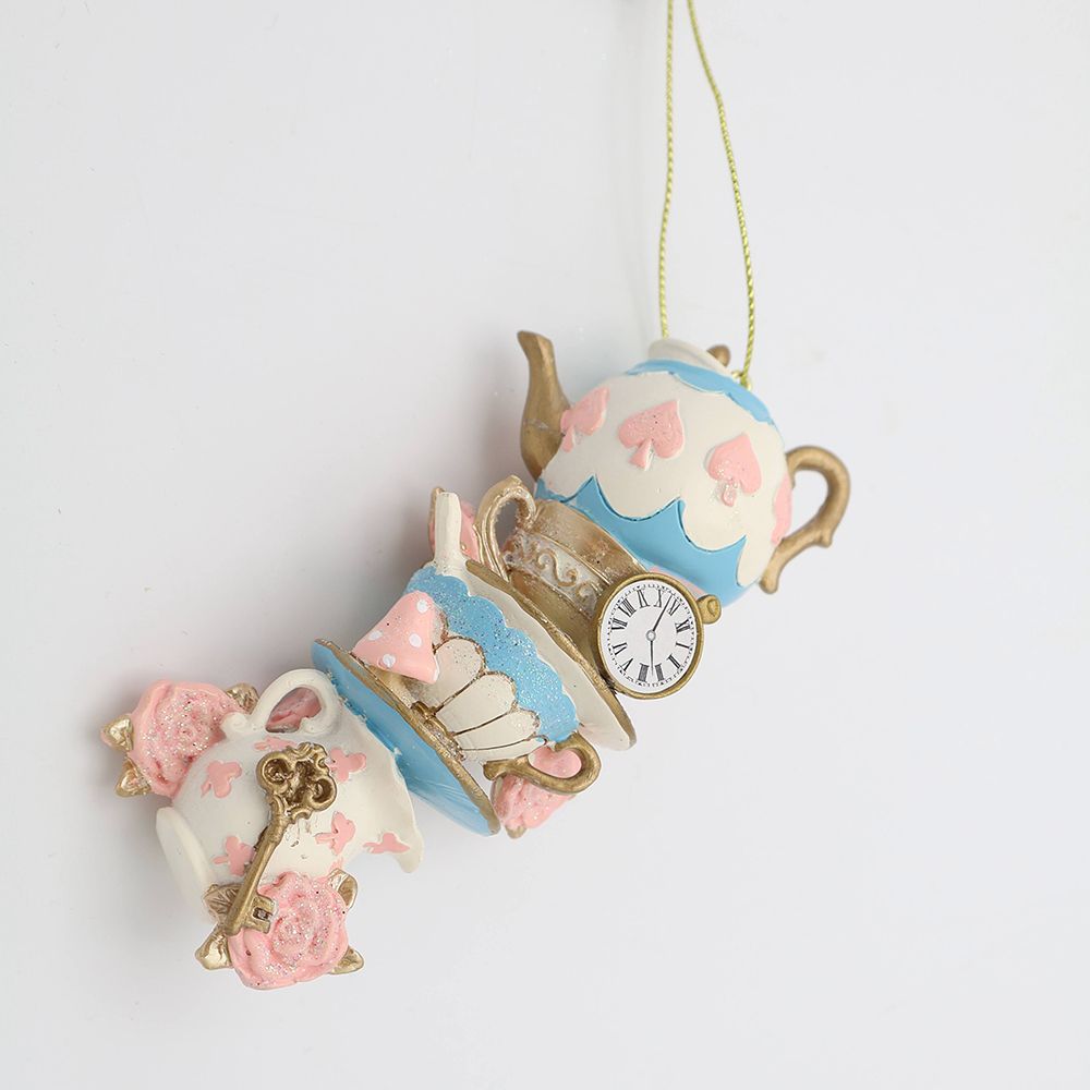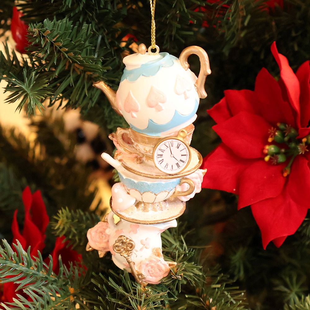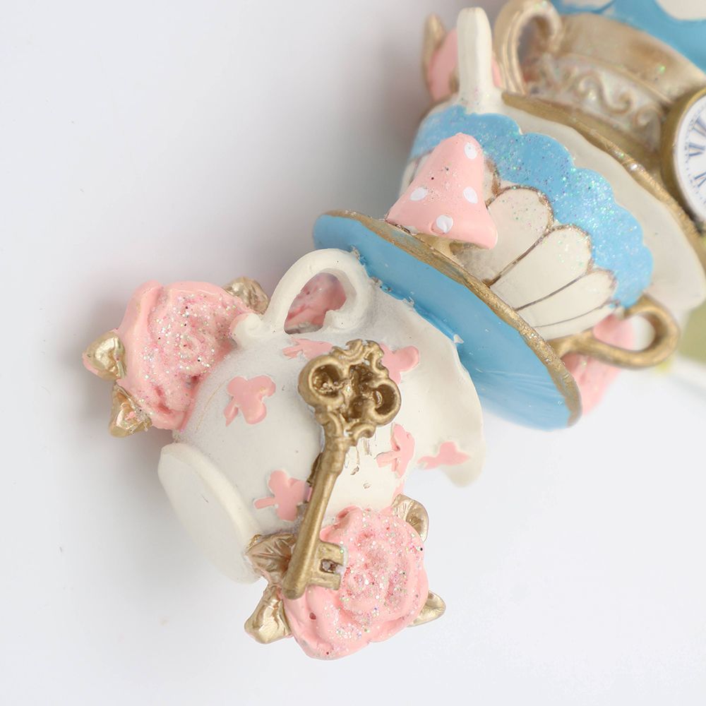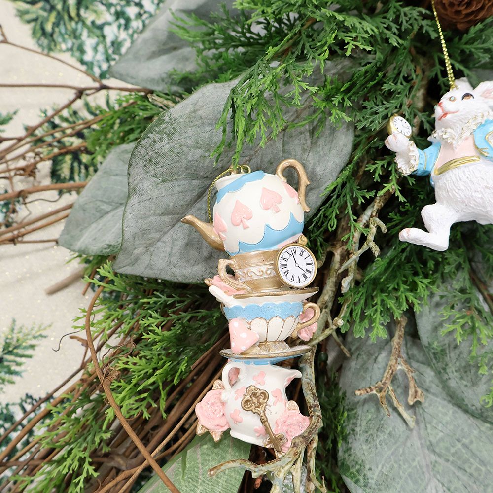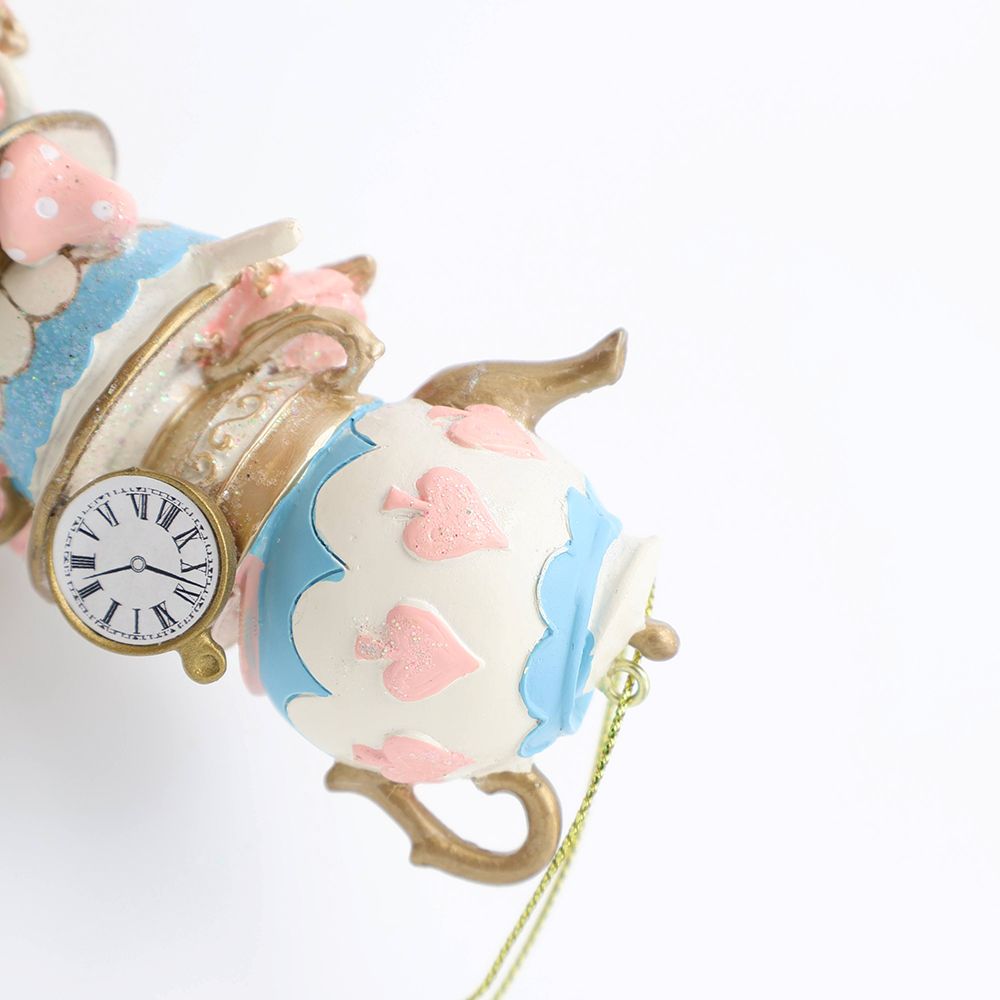ティーポットに、ティーカップ、時計に鍵…どこかで見たような、ワンシーン。Harmonier(ハルモニア)のワンダーランド ティーカップ オーナメントは、不思議の国のアリスのお茶会をイメージした、華やかでユーモラスなティーカップのオーナメント。こちらはパステル(クローバー)のデザインです。