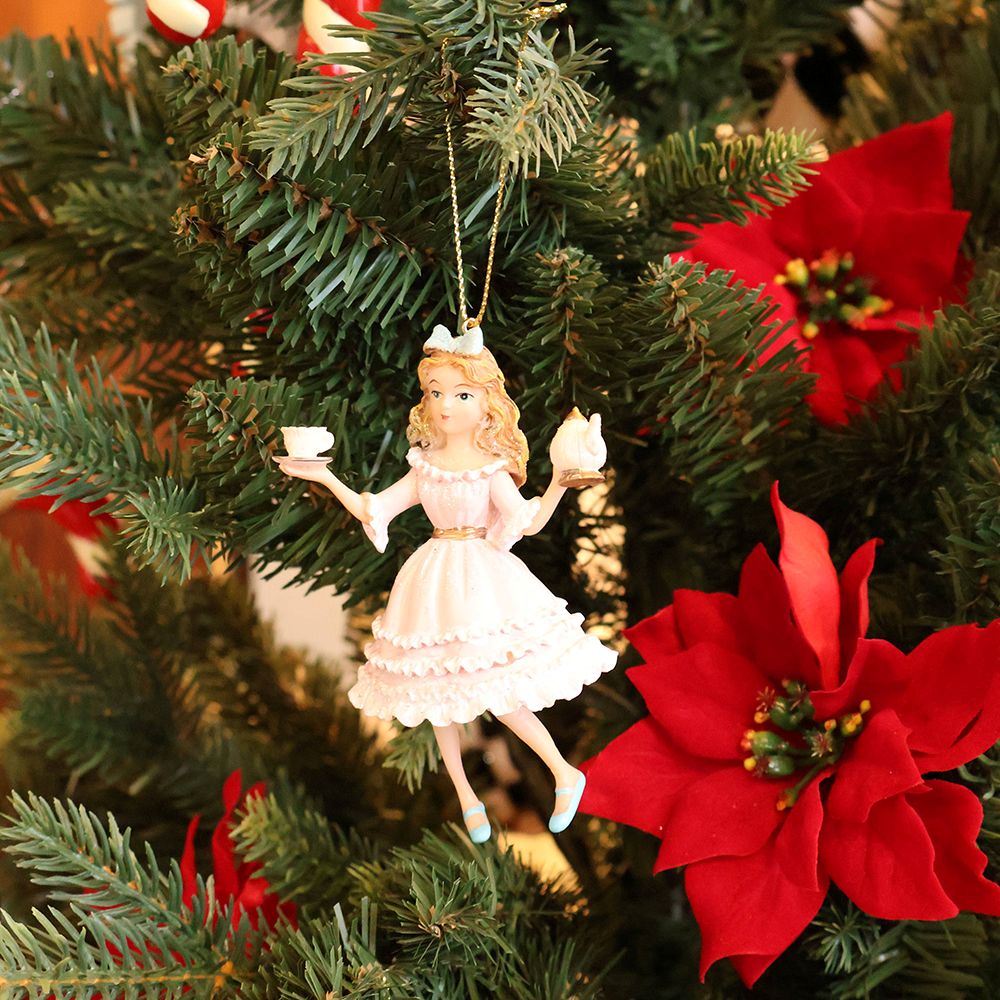 淡いピンクのドレスにリボンを結んで、ティーセットを手にした不思議の国のアリスの主人公アリスが、まるでおとぎ話から抜け出してきたよう。ふわりと広がるスカートのフリルや、繊細な表情まで丁寧に仕上げられた、Harmonier(ハルモニア)のワンダーランド アリス オーナメントです。