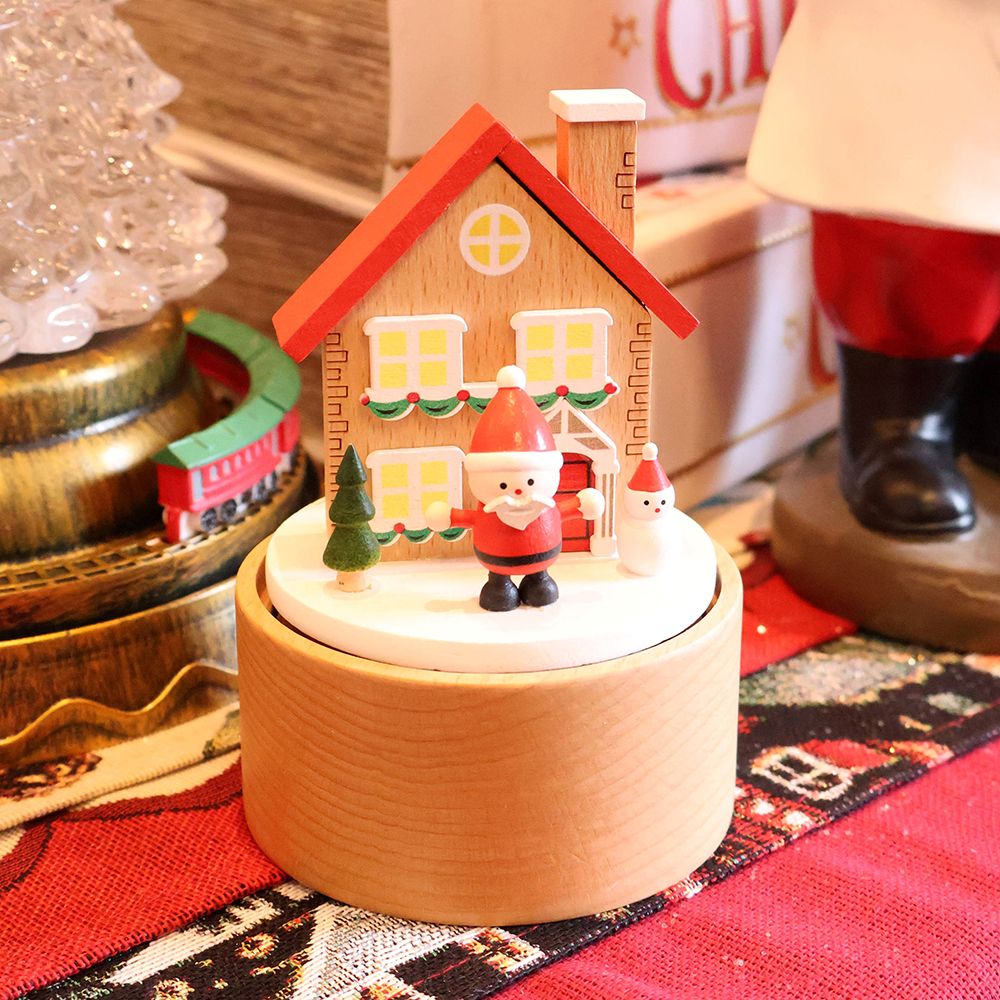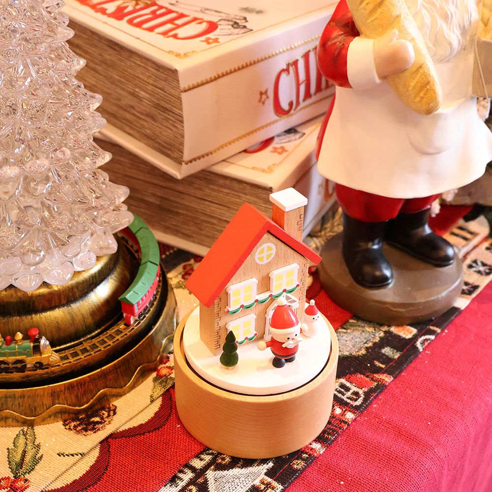 このオルゴールは手巻き式で、クリスマスのメロディーを楽しめます。