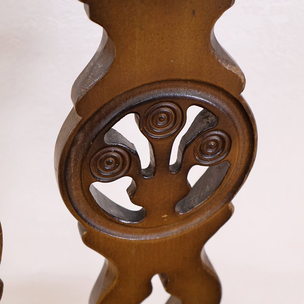 透かしの装飾をほどこした背板が3つ並んだ椅子は、シルエットがとても印象的。
