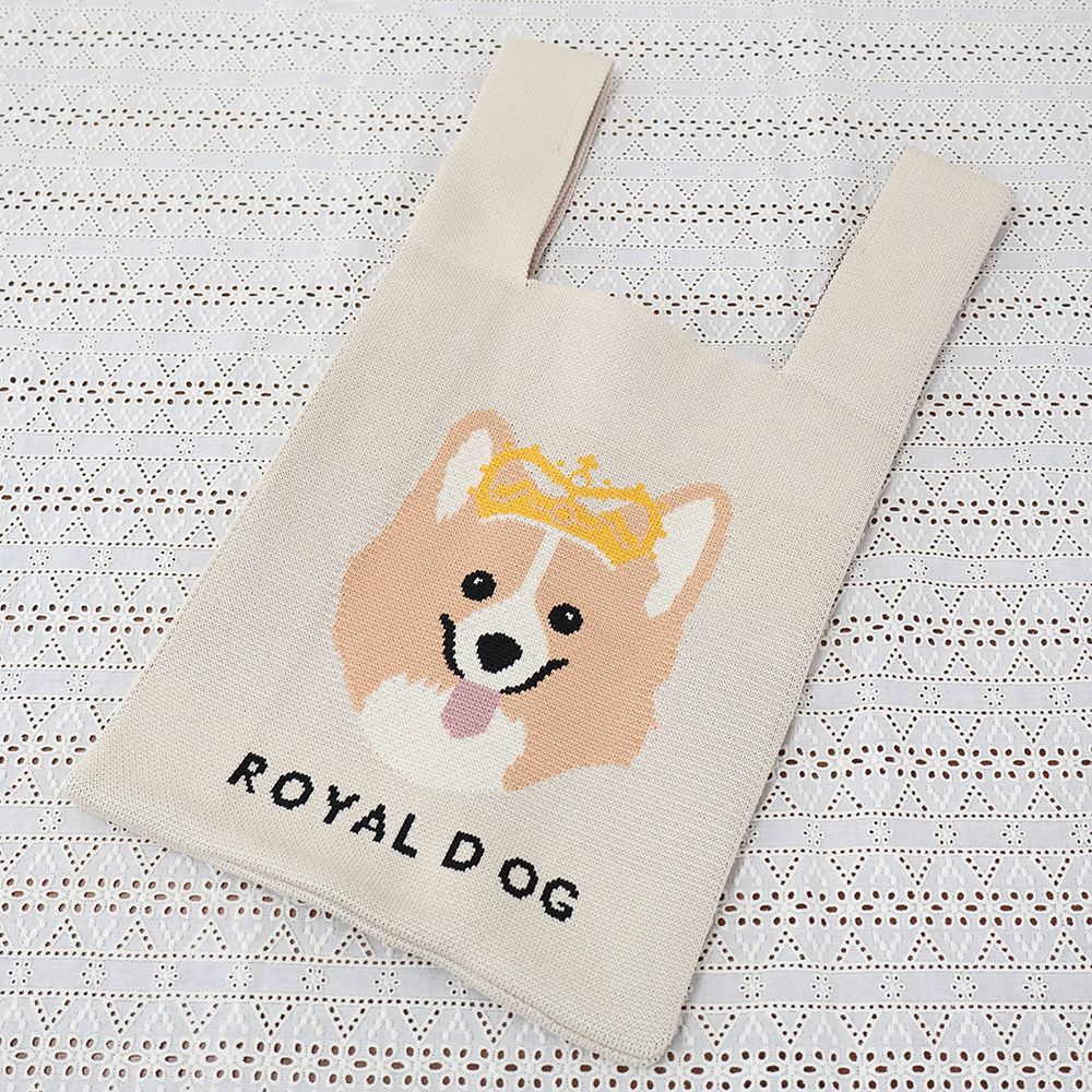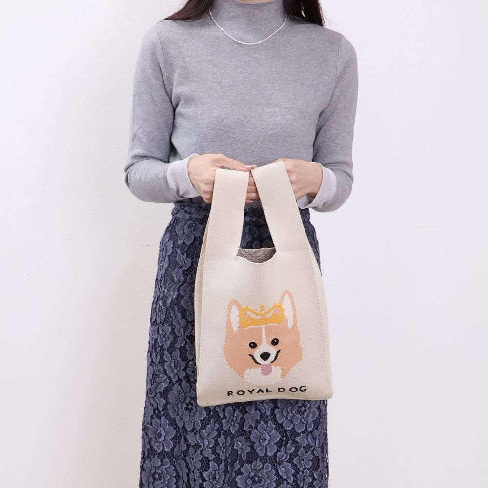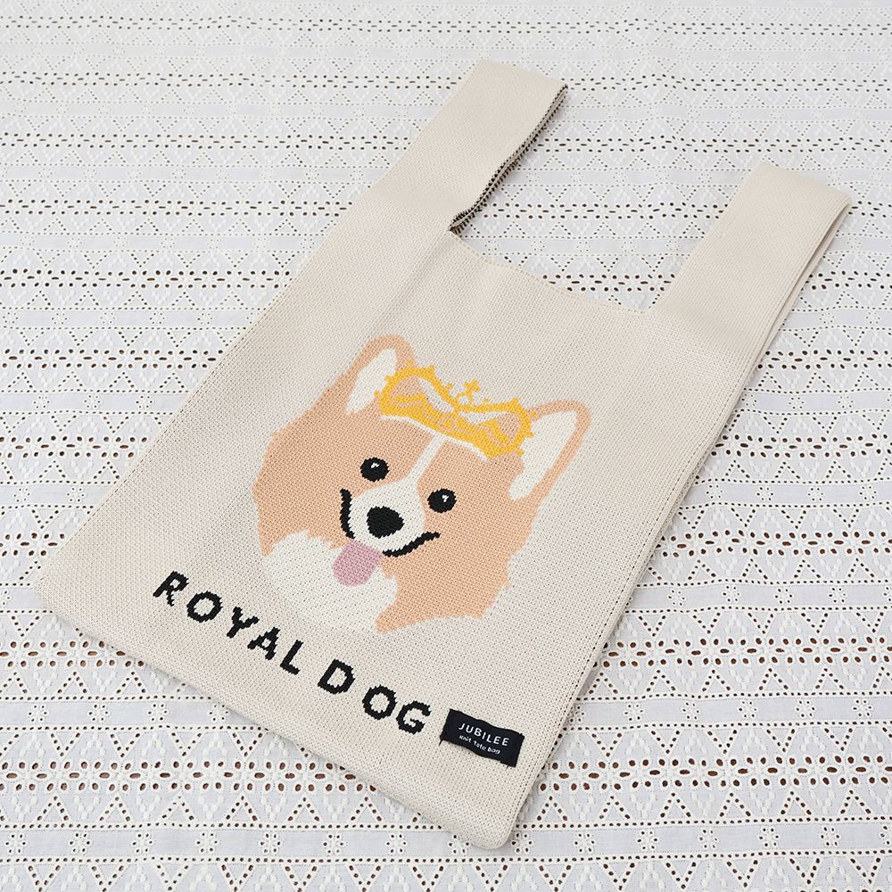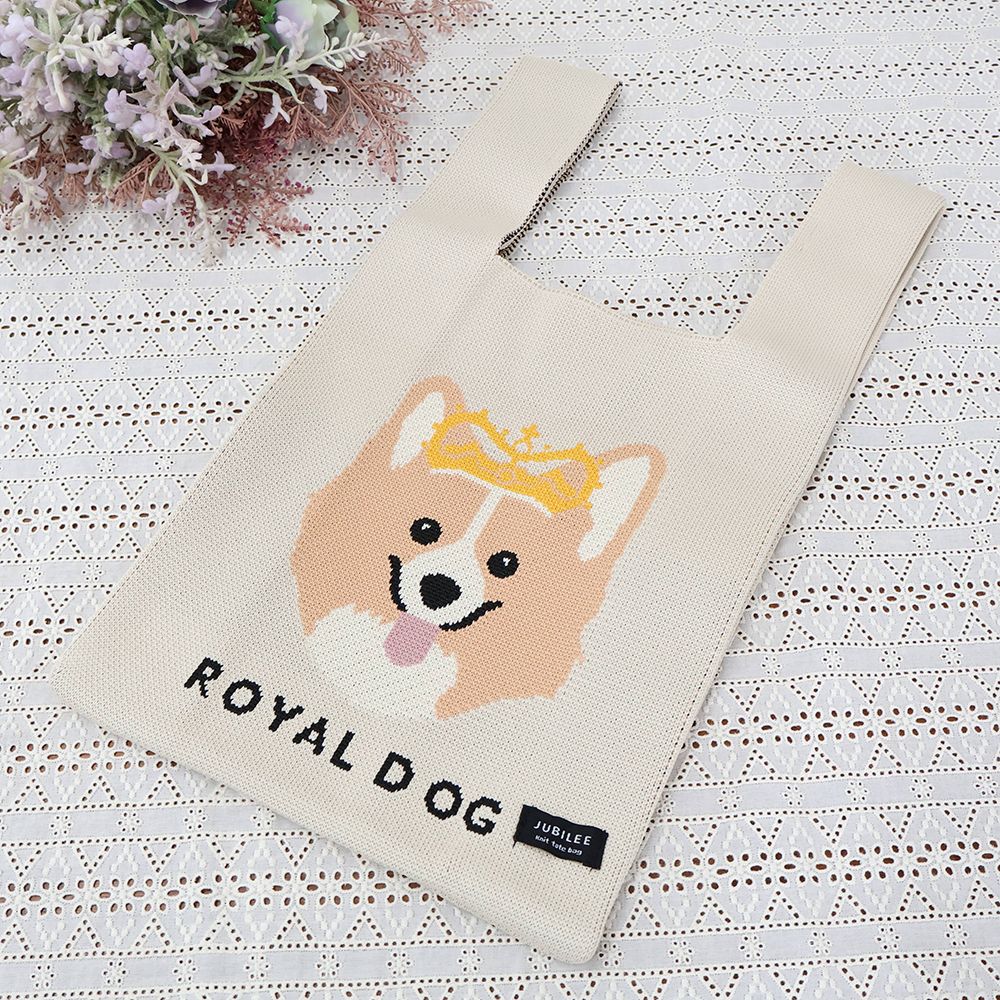 王冠をかぶったコーギー♪ ニットトートバッグBeige DM1-TOTEK-ORG001