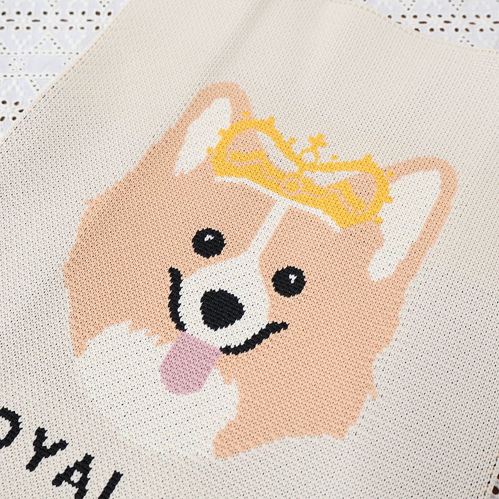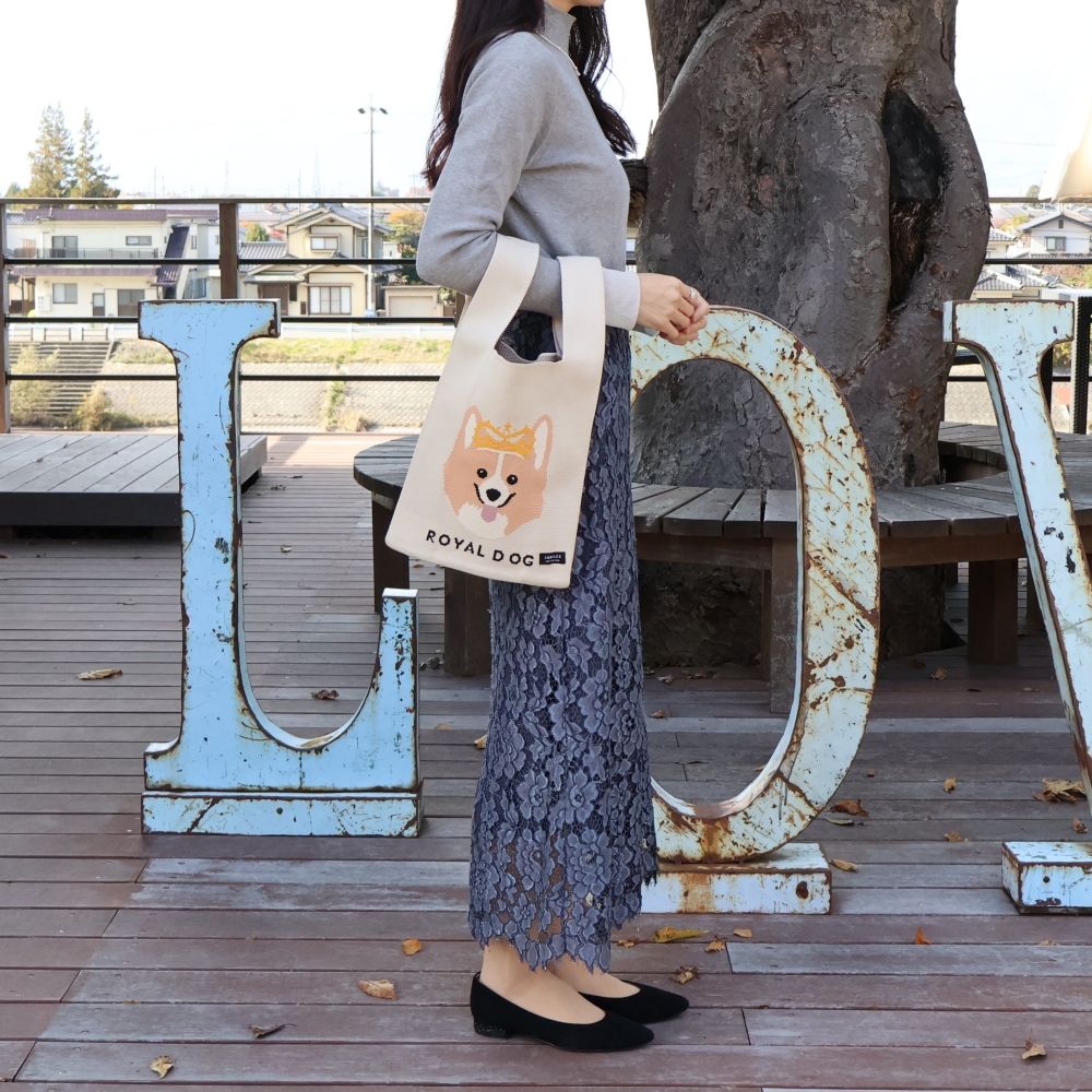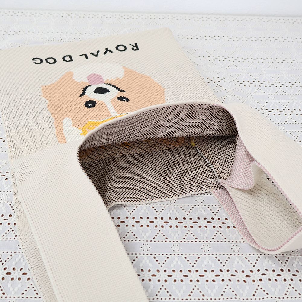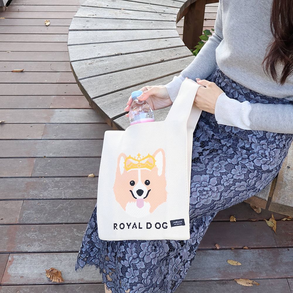 王冠をかぶったコーギー♪ ニットトートバッグBeige DM1-TOTEK-ORG001