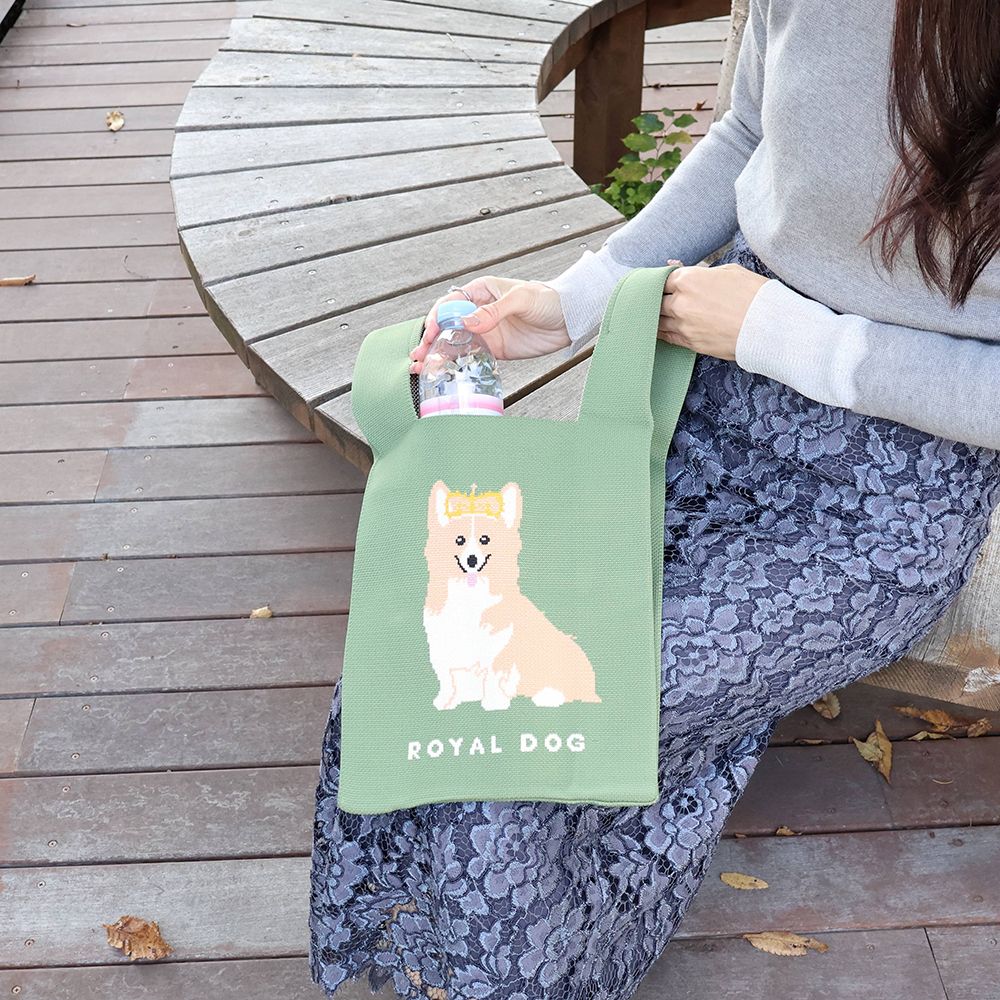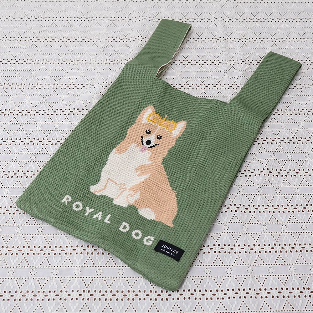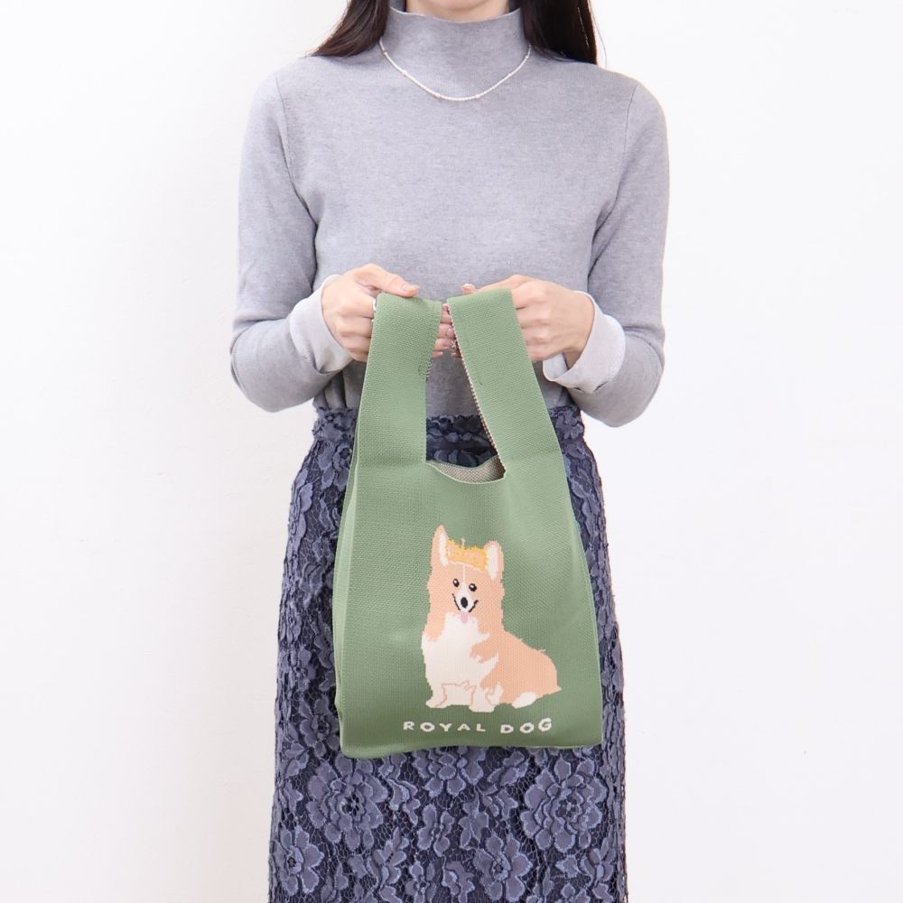 女王が愛したコーギー♪ ニットトートバッグGreen DM1-TOTEK-ORG003