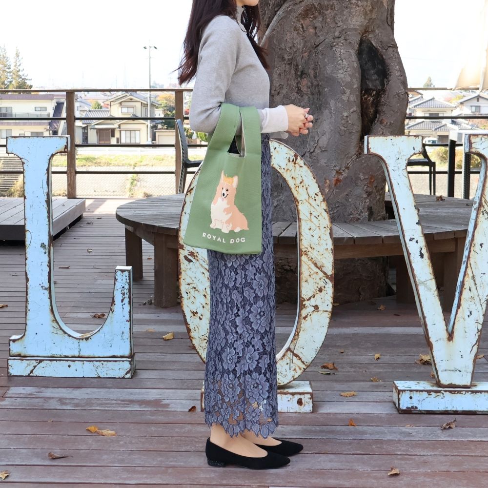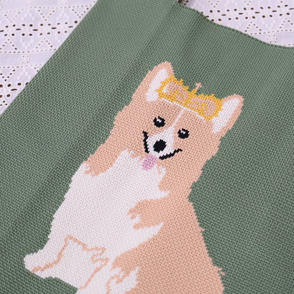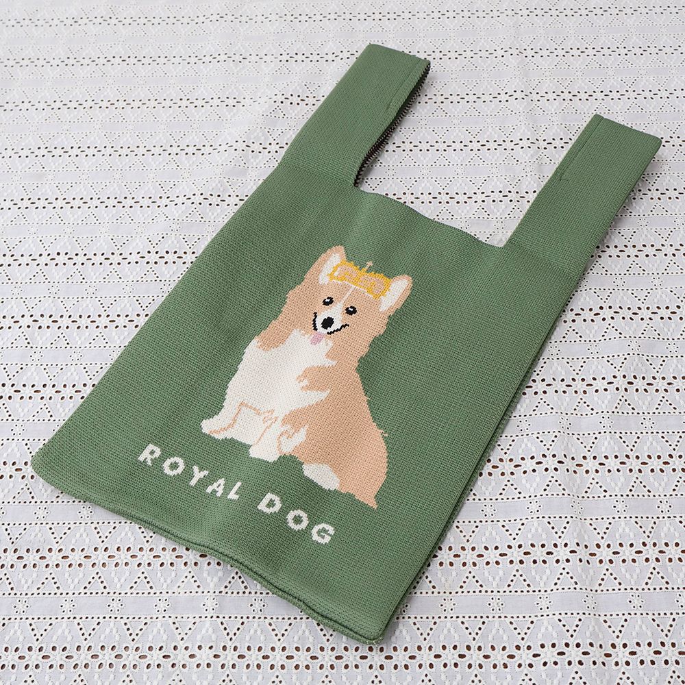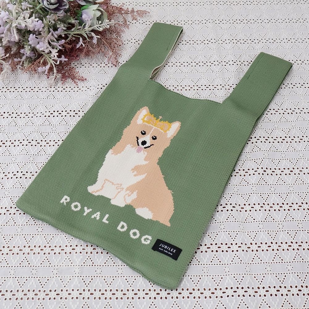 女王が愛したコーギー♪ ニットトートバッグGreen DM1-TOTEK-ORG003