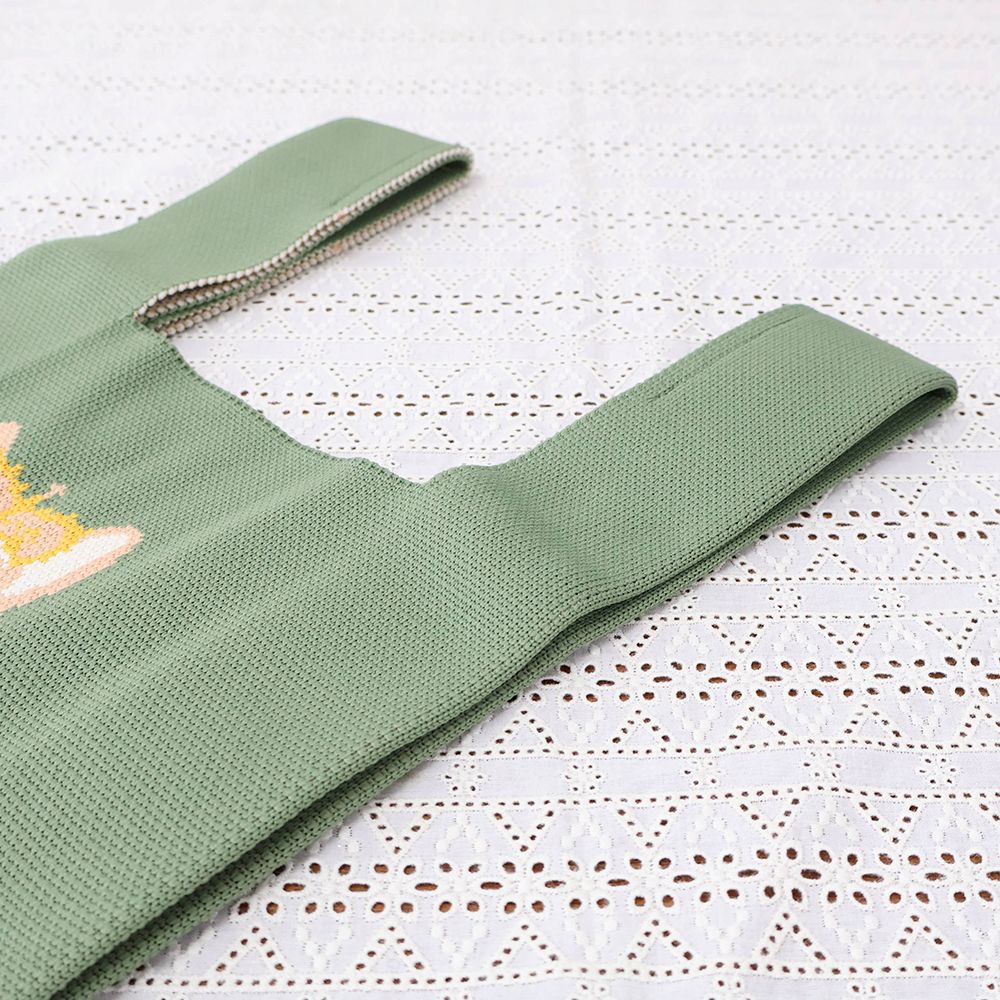 大胆なデザインとカラーが目を惹く、ニット素材トートバッグ。持ち歩きにちょうど良いサイズです。
