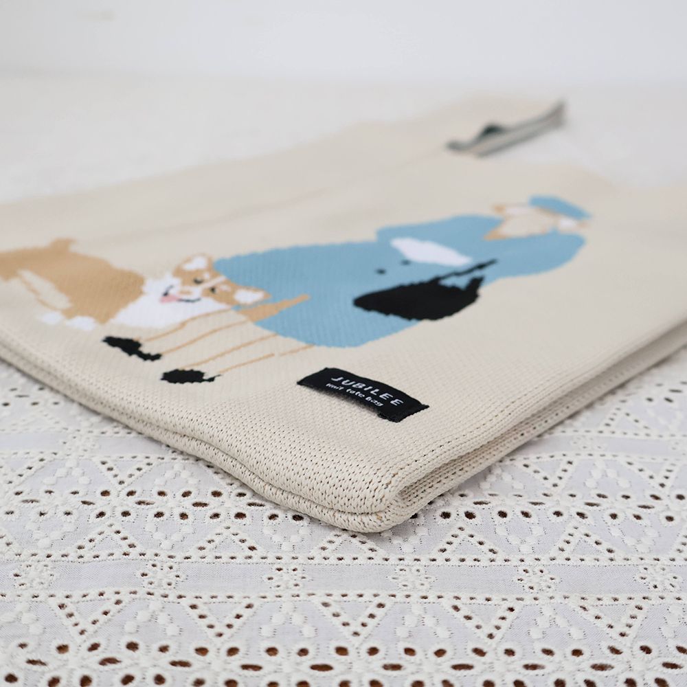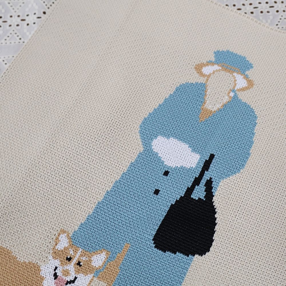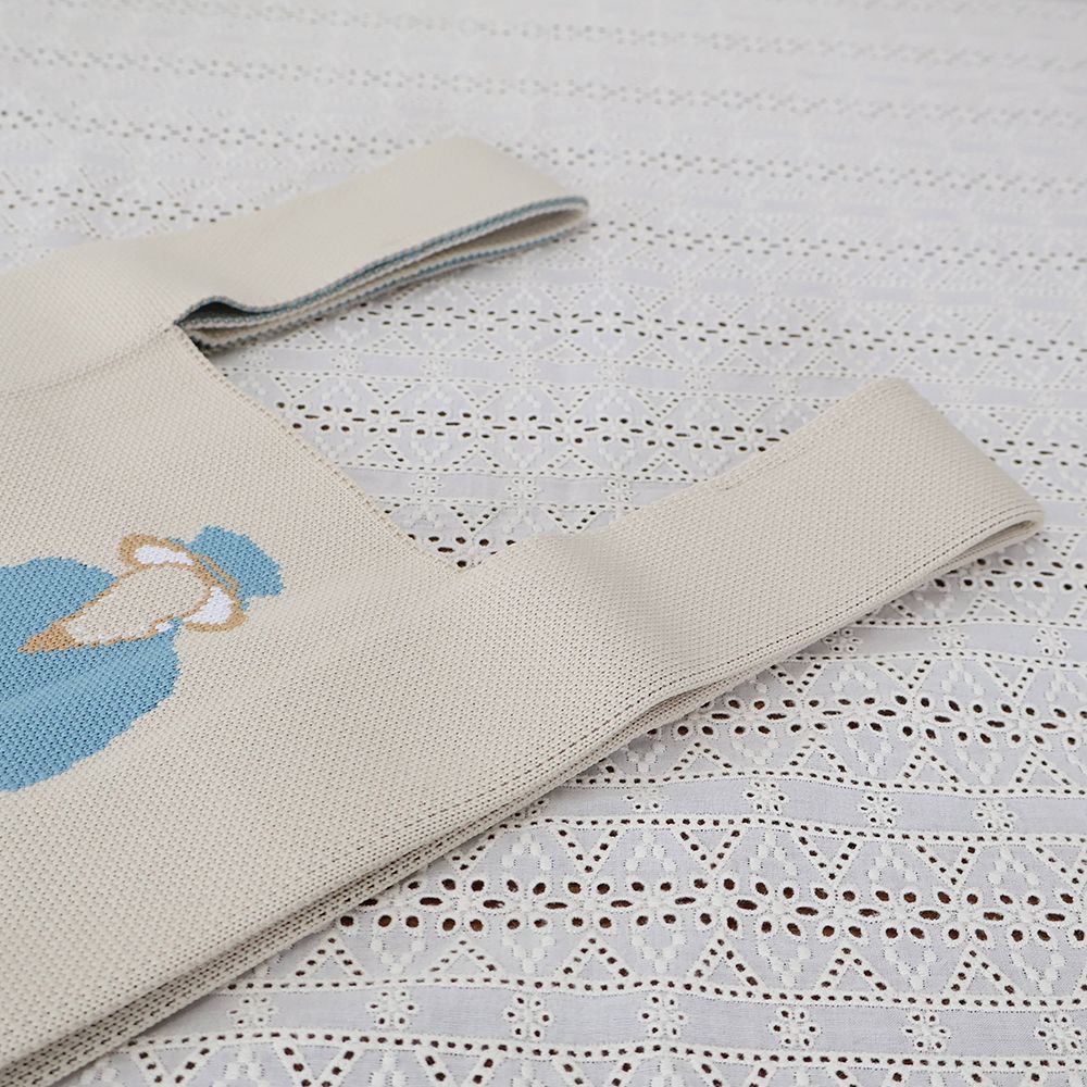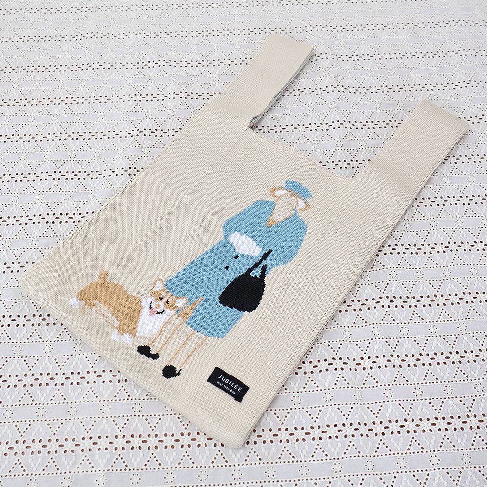 可愛い女王とコーギー柄♪ ニットトートバッグBeige DM1-TOTEK-ORG004