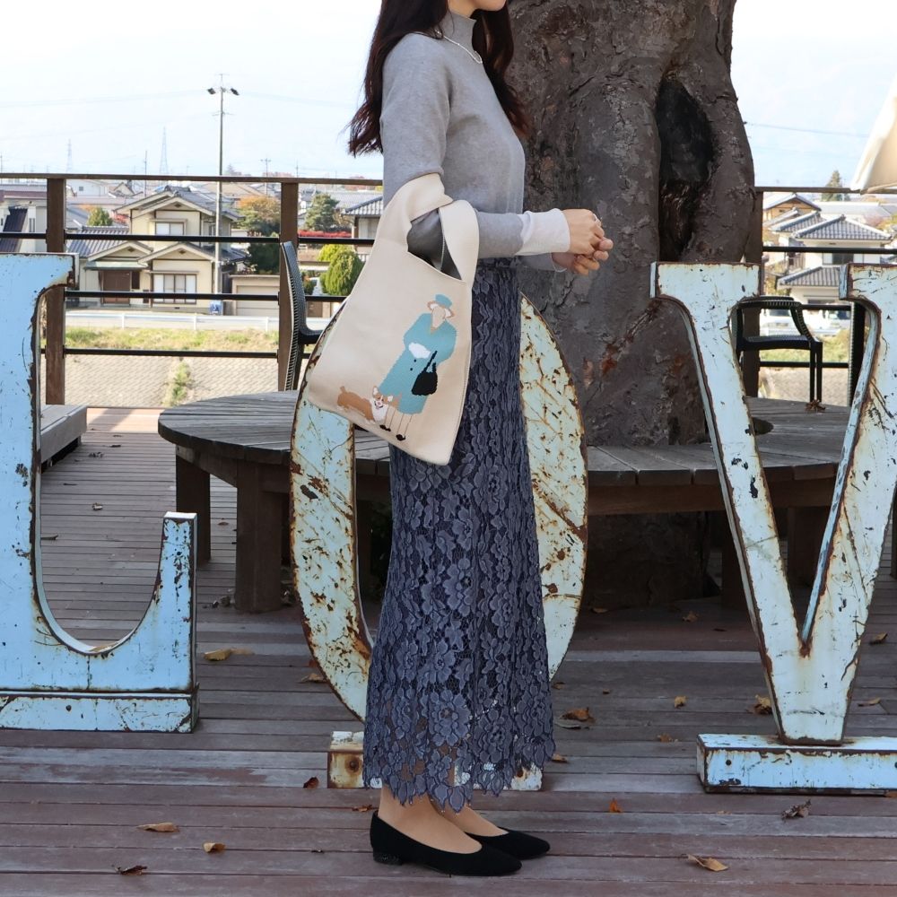 伸縮性のあるニット素材ながら、密に編み込まれて軽いのに丈夫。季節を問わず持ち歩きたくなりますね♪
