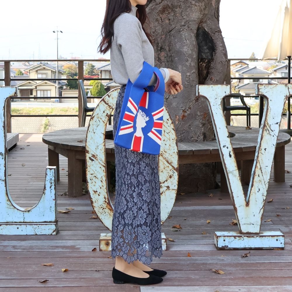 英国女王と外出しましょ♪ ニットトートバッグBlue DM1-TOTEK-ORG005