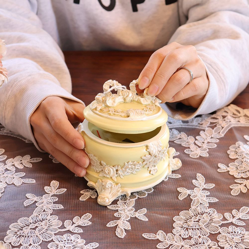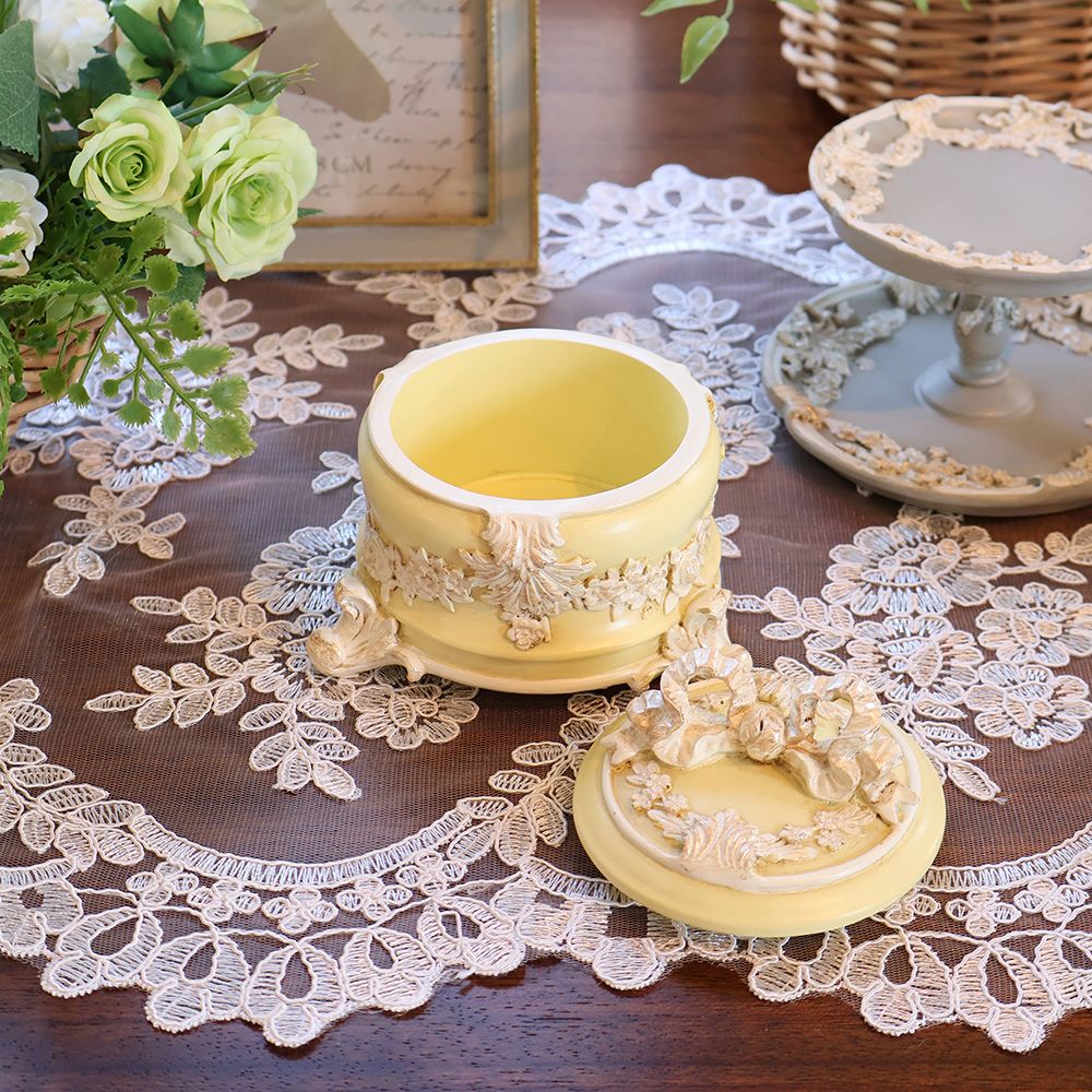 ふたにあしらわれた小さなバラの装飾が、ボックス全体に華やぎと可憐さを添えてくれています。