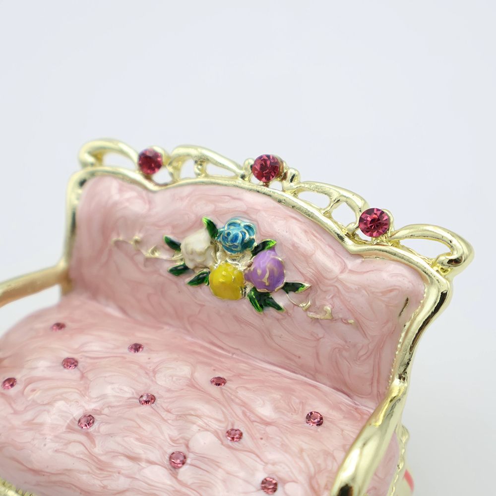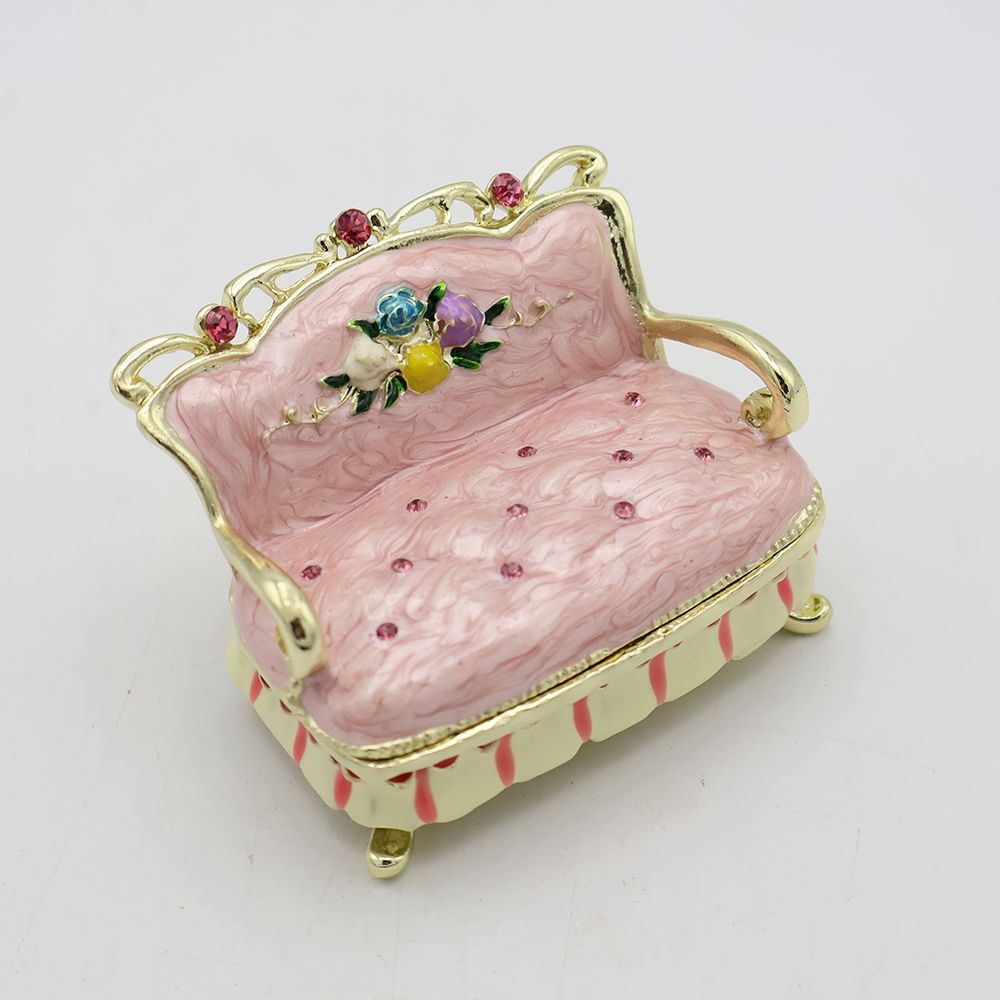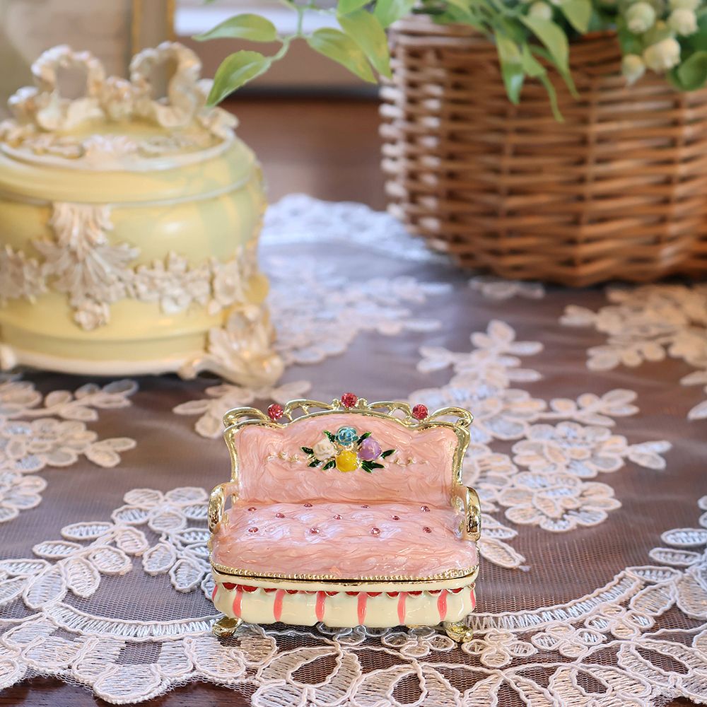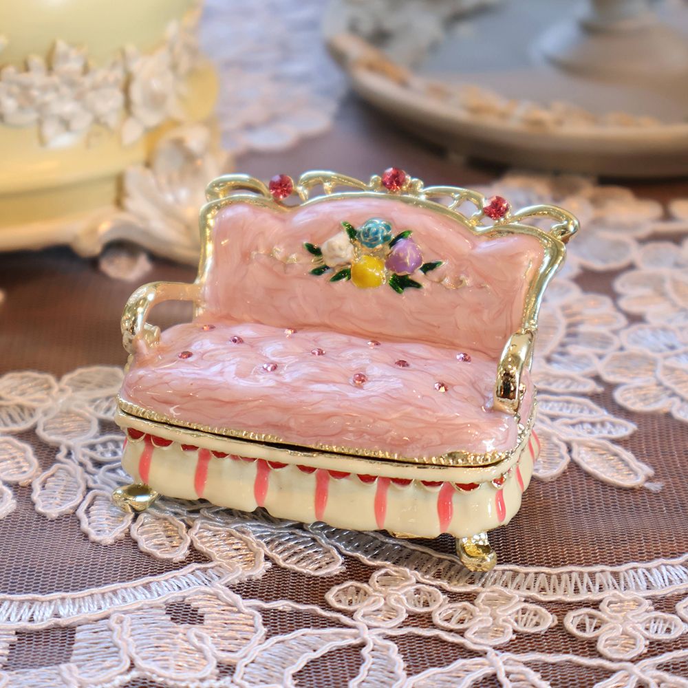 ガブリオールレッグで優雅に佇む、手のひらサイズの小さなソファ。実はこれ、ジュエリーボックスなんです。