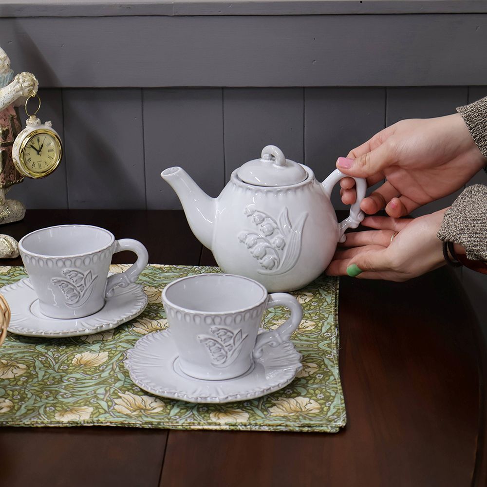 ふっくらと浮き出たスズランのレリーフも、お茶を注ぐひとときをより感覚的で豊かなものにしてくれる大切なエッセンスです。