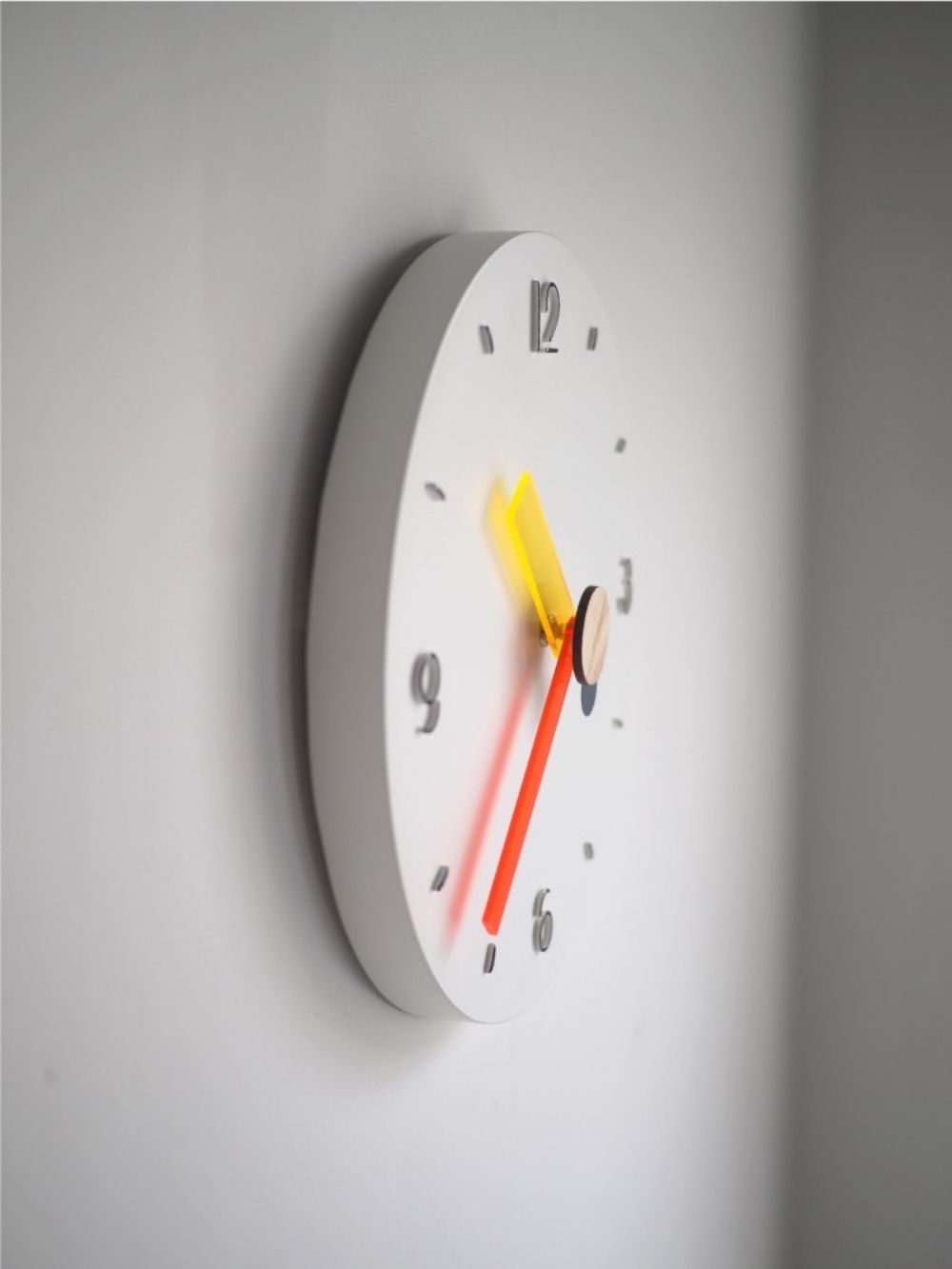 白い文字盤に落ちる赤や黄色の影にも遊び心が光ります。