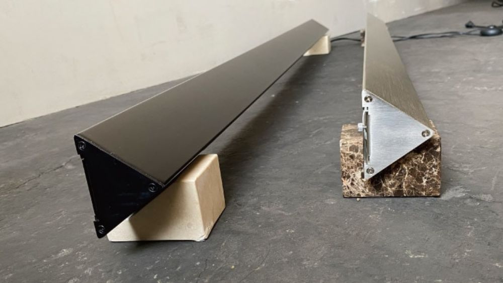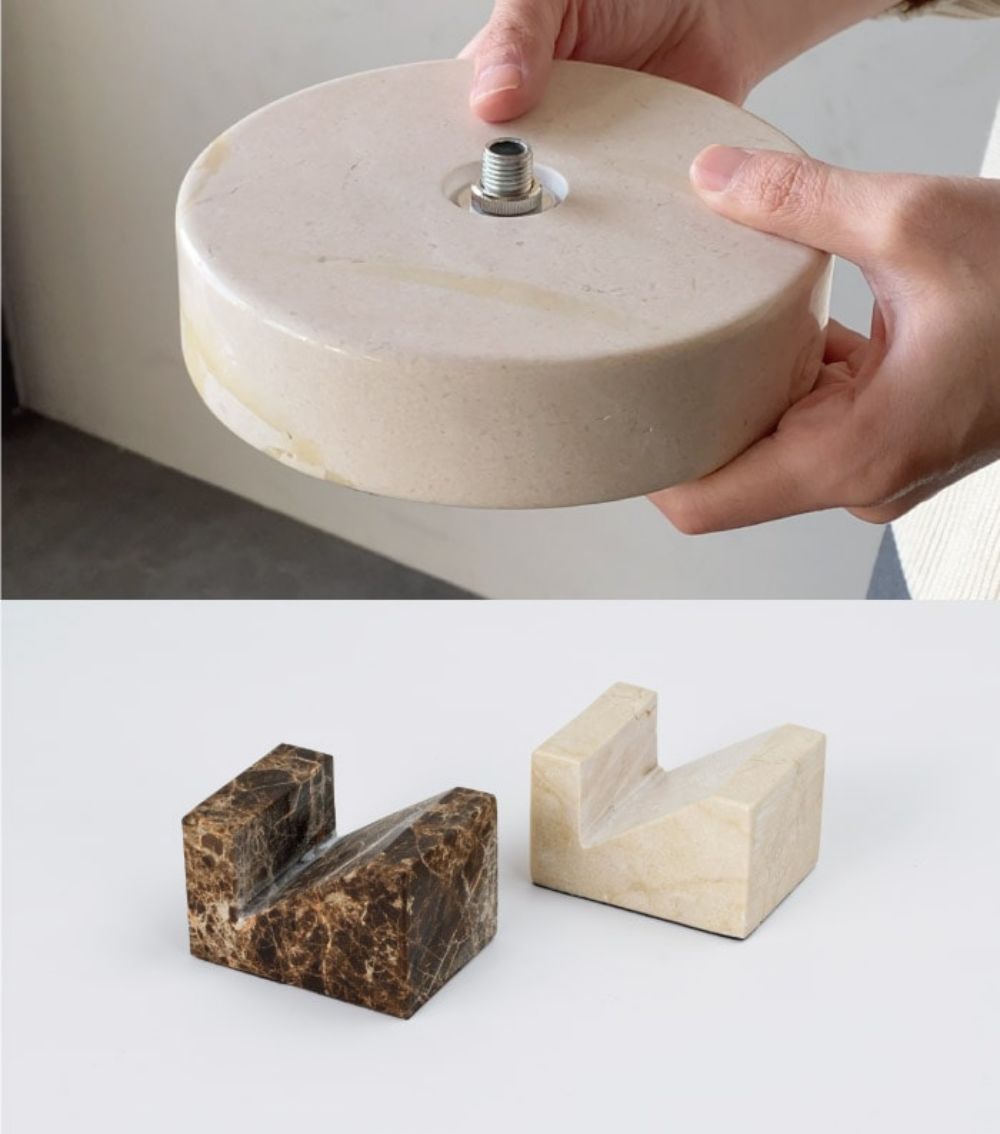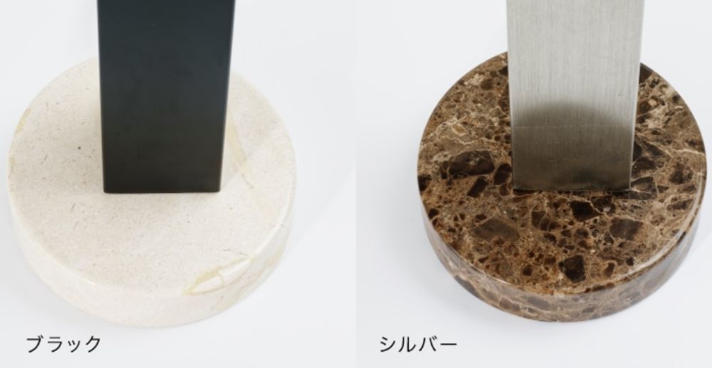 冷たさを持つアルミ素材と、あたたかみのある大理石のコントラストが互いを引き立てます。