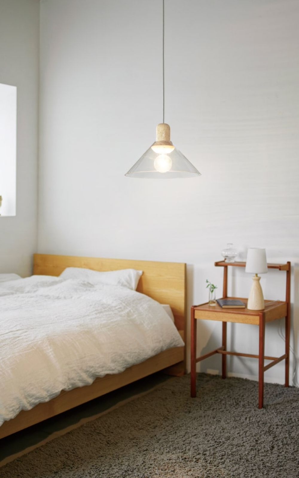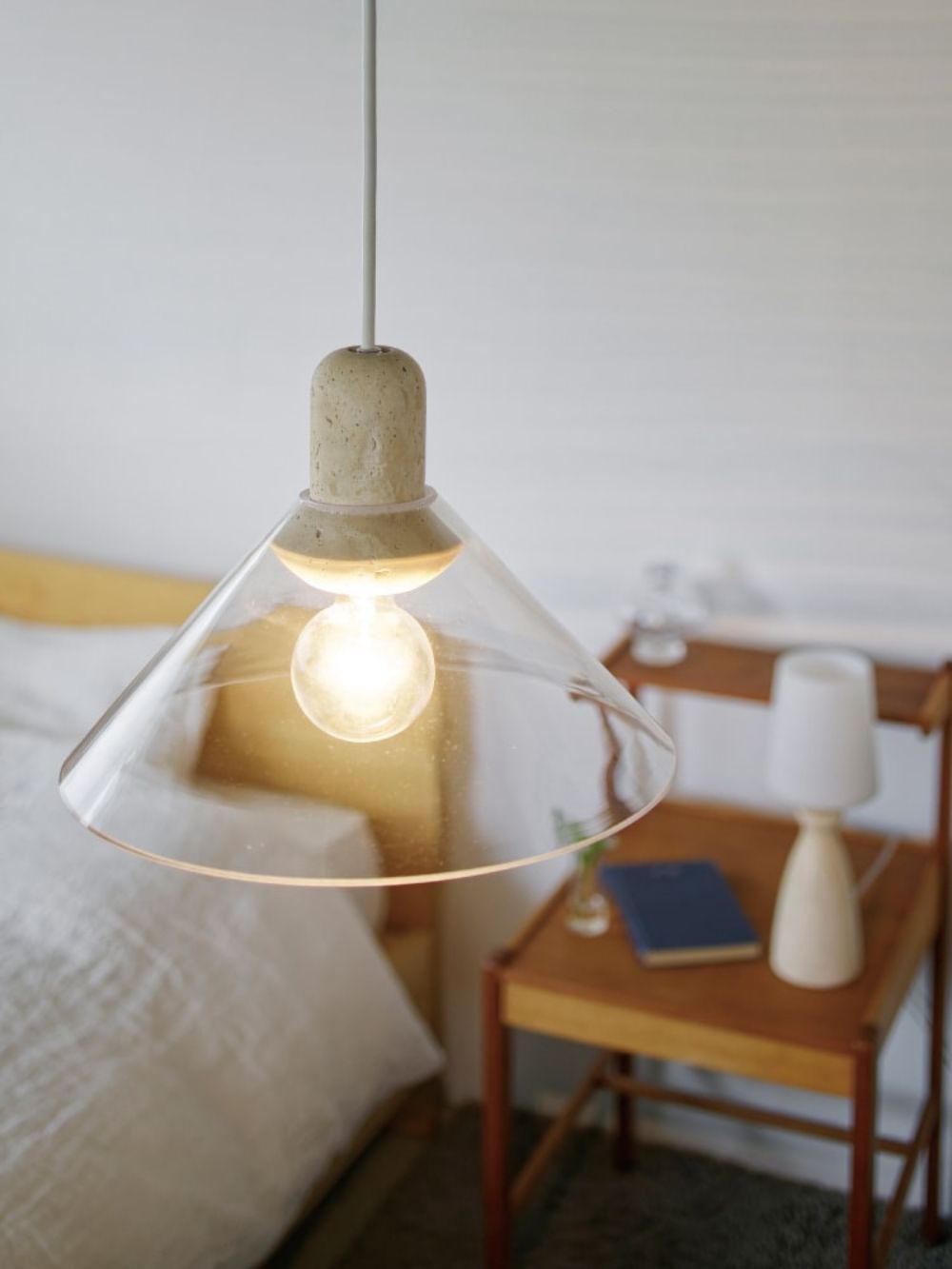 ソケットやネジといった機構はあえて見せず、素材そのものの美しさを際立たせるミニマルな仕立てに。