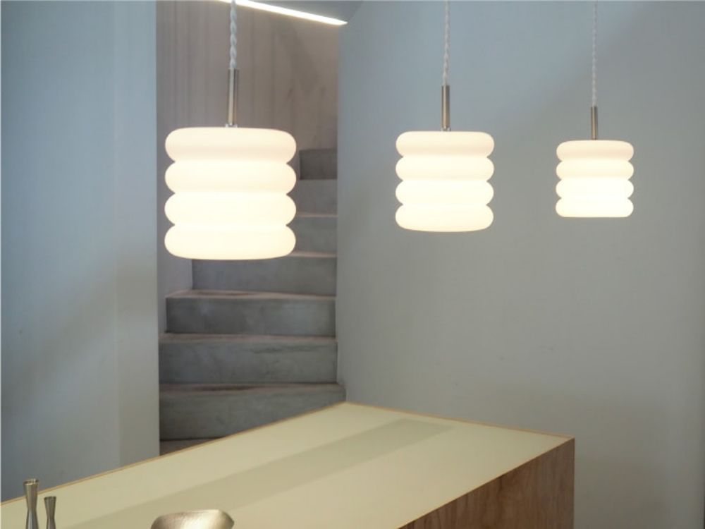 マットなガラスから漏れる柔らかな光が、ファニーで実験的な空間に。