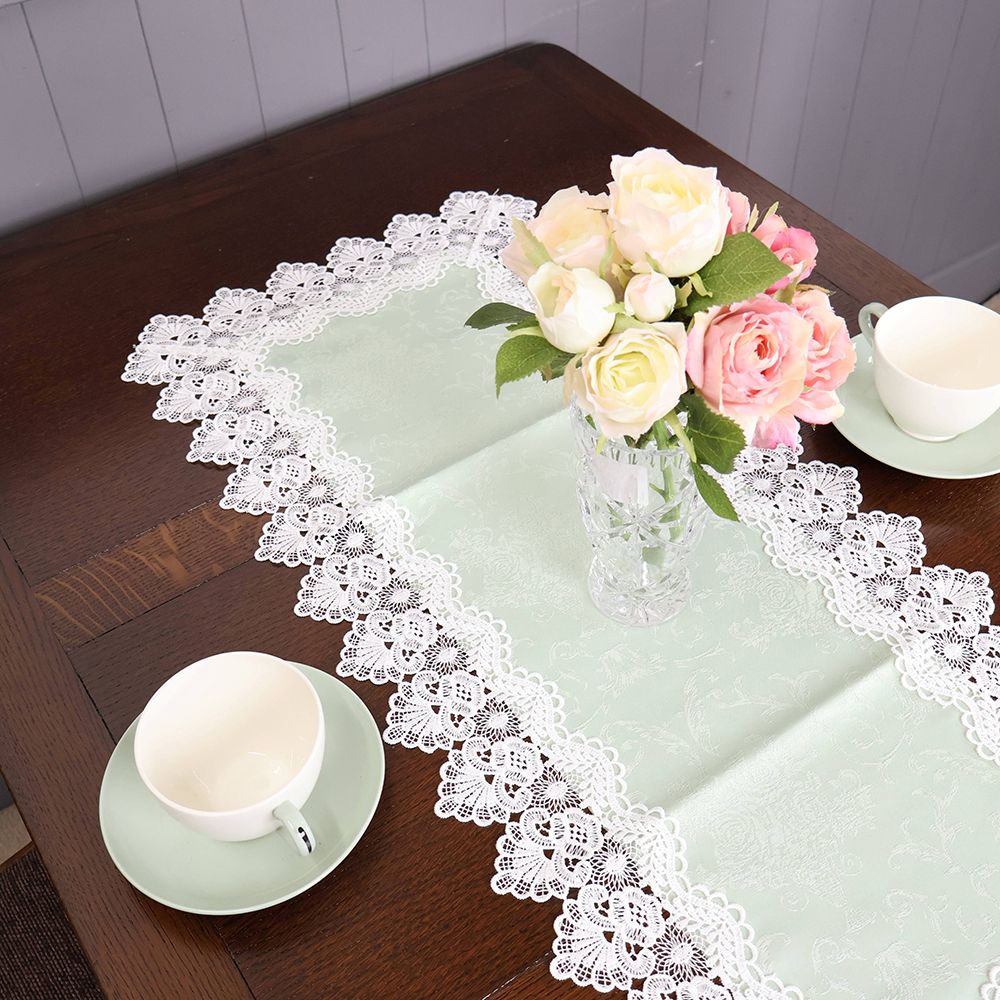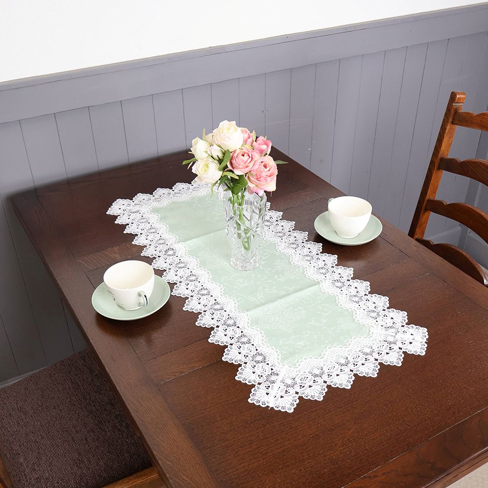 もちろんテーブルだけでなく、サイドボードや棚に敷いてもオシャレ♪ いつもの家具もディスプレイも、レースをサッと広げるだけで華やいで見えるから嬉しくなっちゃう!