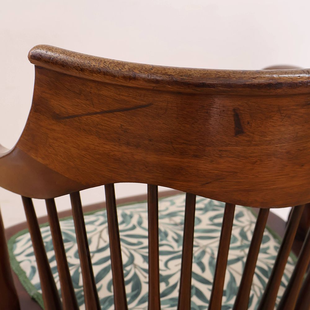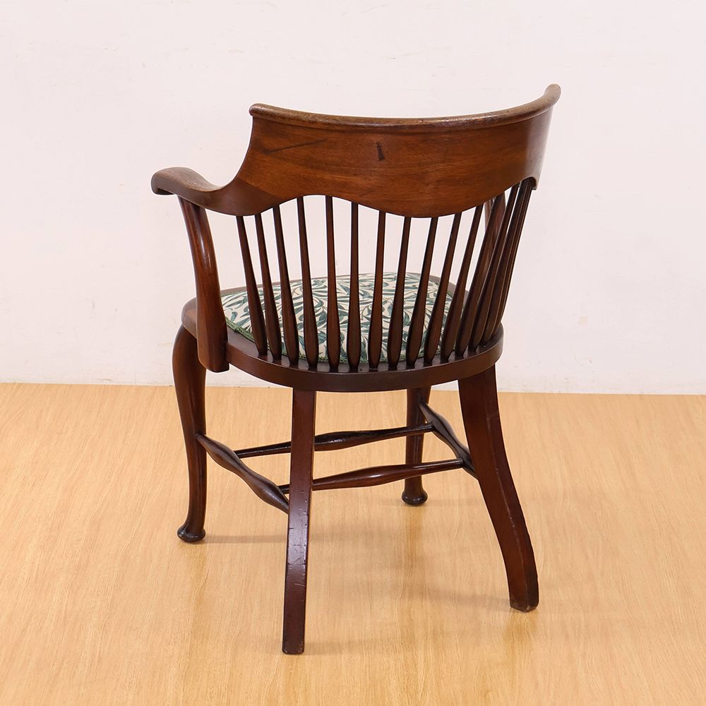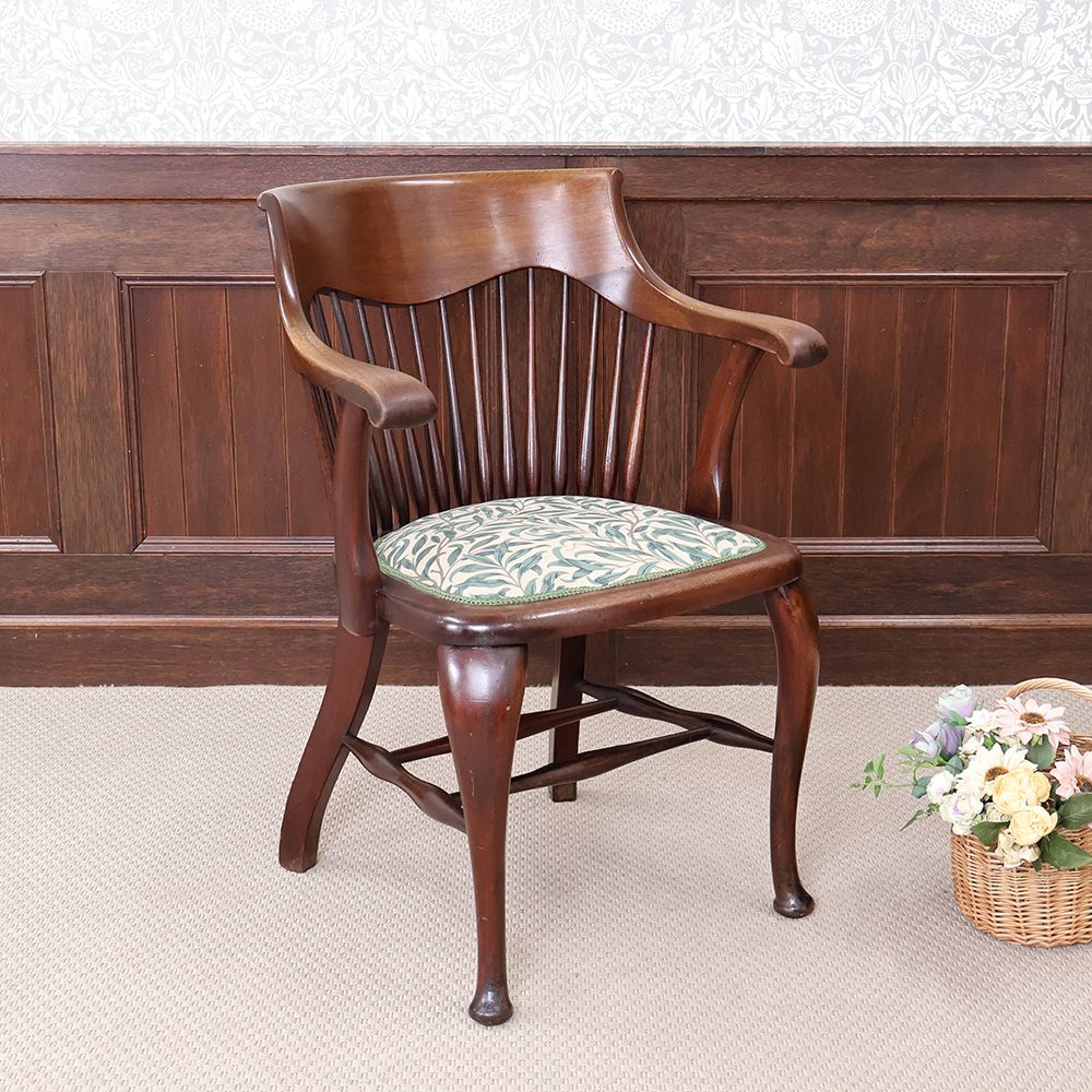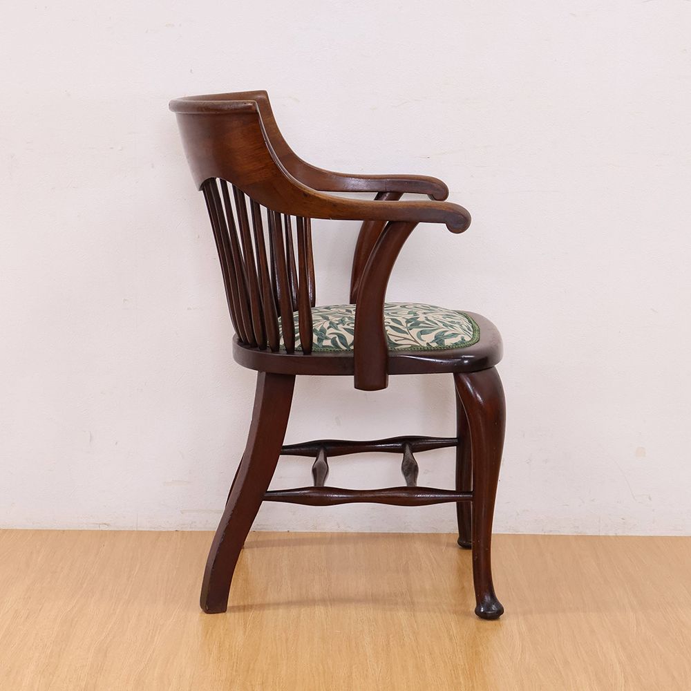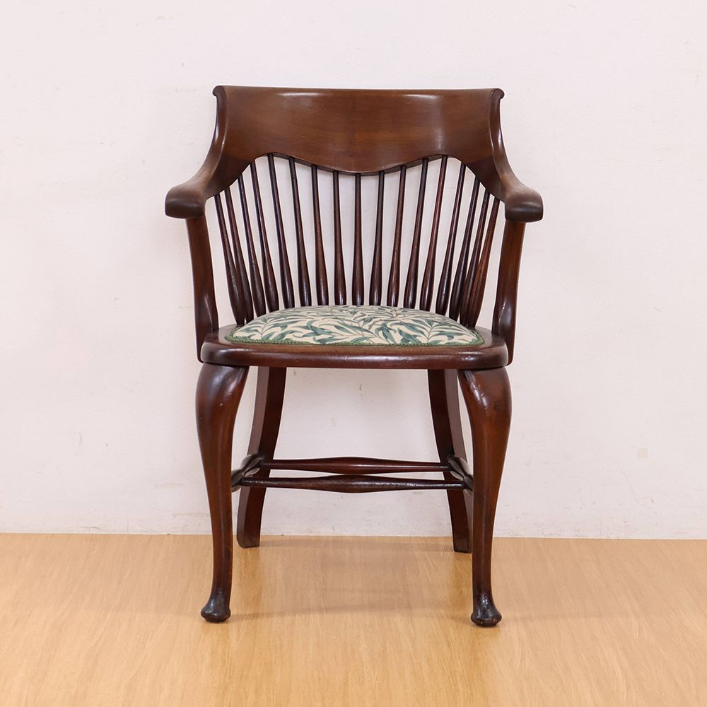 背もたれからアームまで、なめらかにつながるカーブがオシャレなチェア。扇状に広がるスティックに当時世界で流行したアールデコの面影を残す、モダンなアンティークです。
