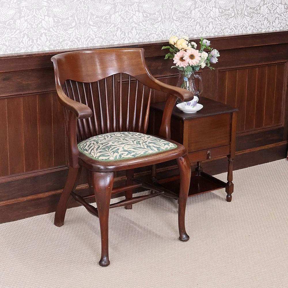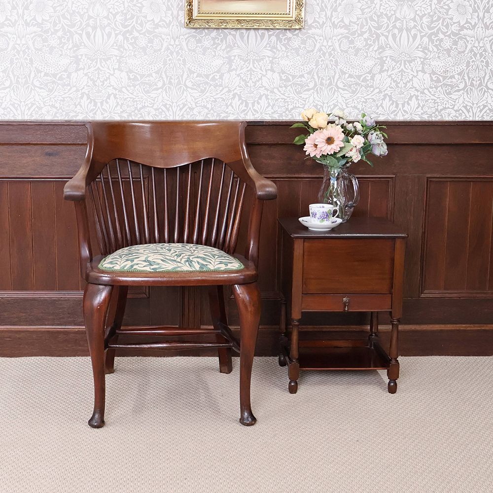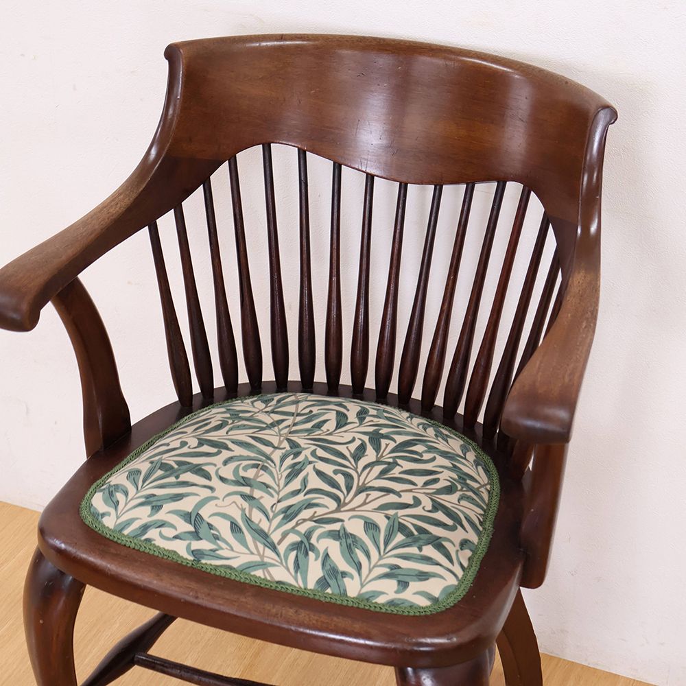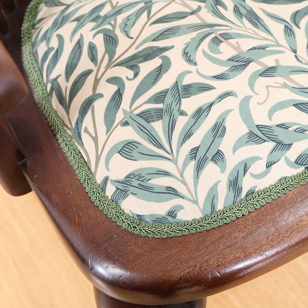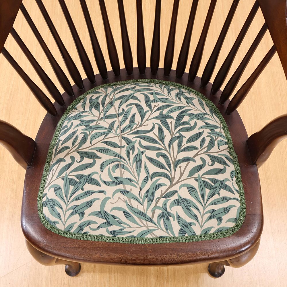 こちらの座面は当店でモリスのファブリック「Willow Bough」に張り替えました。