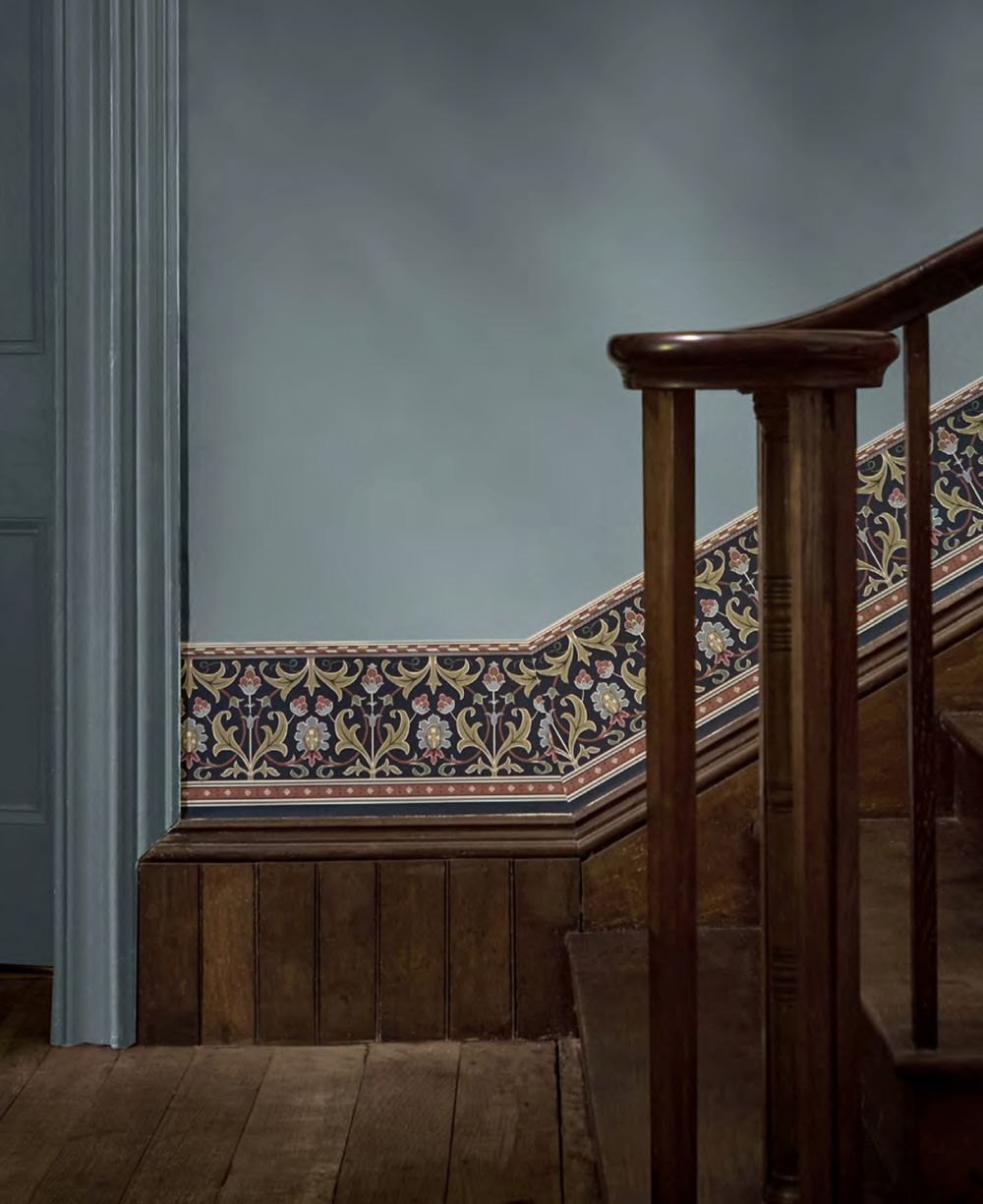 植物モチーフの優雅さと、アーカイブデザインならではの重厚な装飾性が融合した一枚で、壁紙のボーダーやアクセントとして空間に上質なリズムをもたらします。