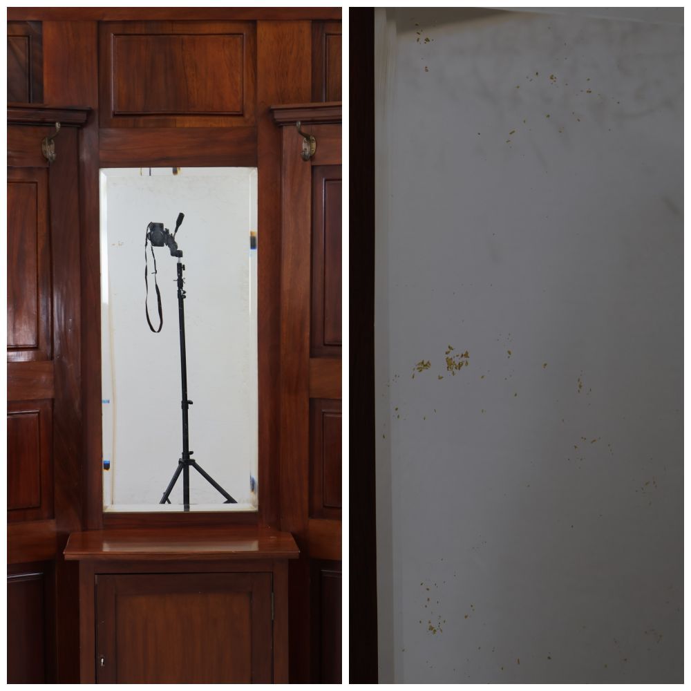 ミラーにはスポットと呼ばれる黒い小さなシミのようなものがみられます。ご使用には問題なく、アンティークミラーならではの経年変化としてお楽しみください。