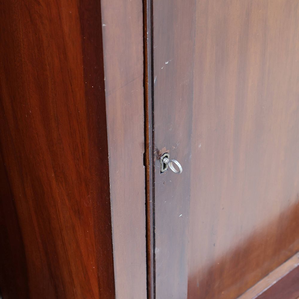 もちろん本物のドアではないので左右の扉は動きませんが、マホガニー材で贅沢に・丁寧に鏡板をあしらった作りは洗練されていて重厚。