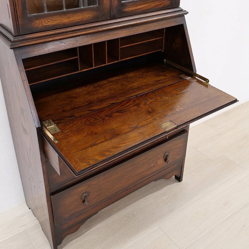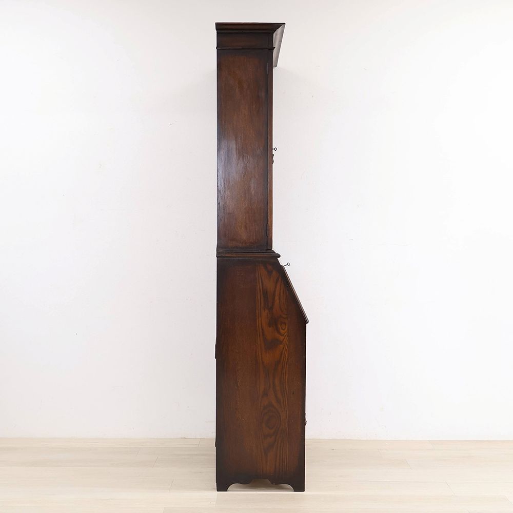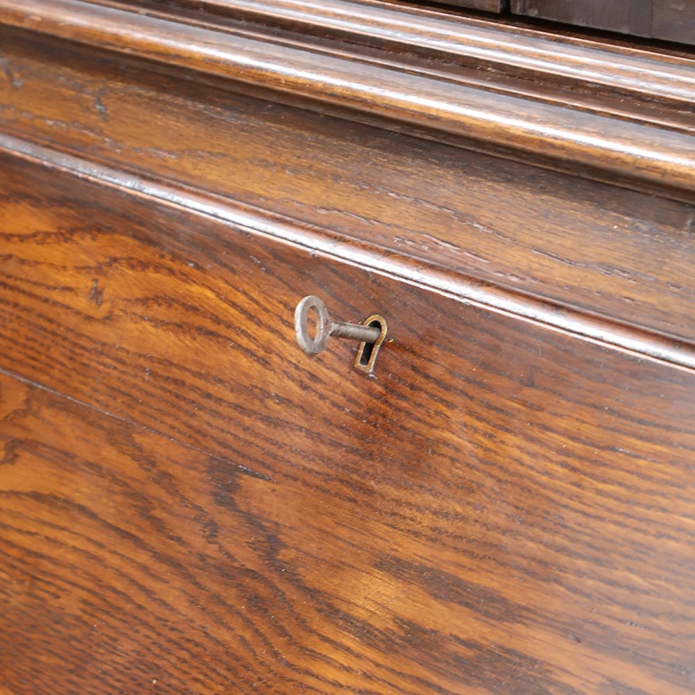 時を経て、ところどころ深い色に染まったオークの風合いも味わい深くて、ウットリと眺めてしまうほど素敵な佇まい。デスクの前に座るたびに、素敵な時間が始まる予感に心ときめきくアンティーク・ビューローブックケースです。