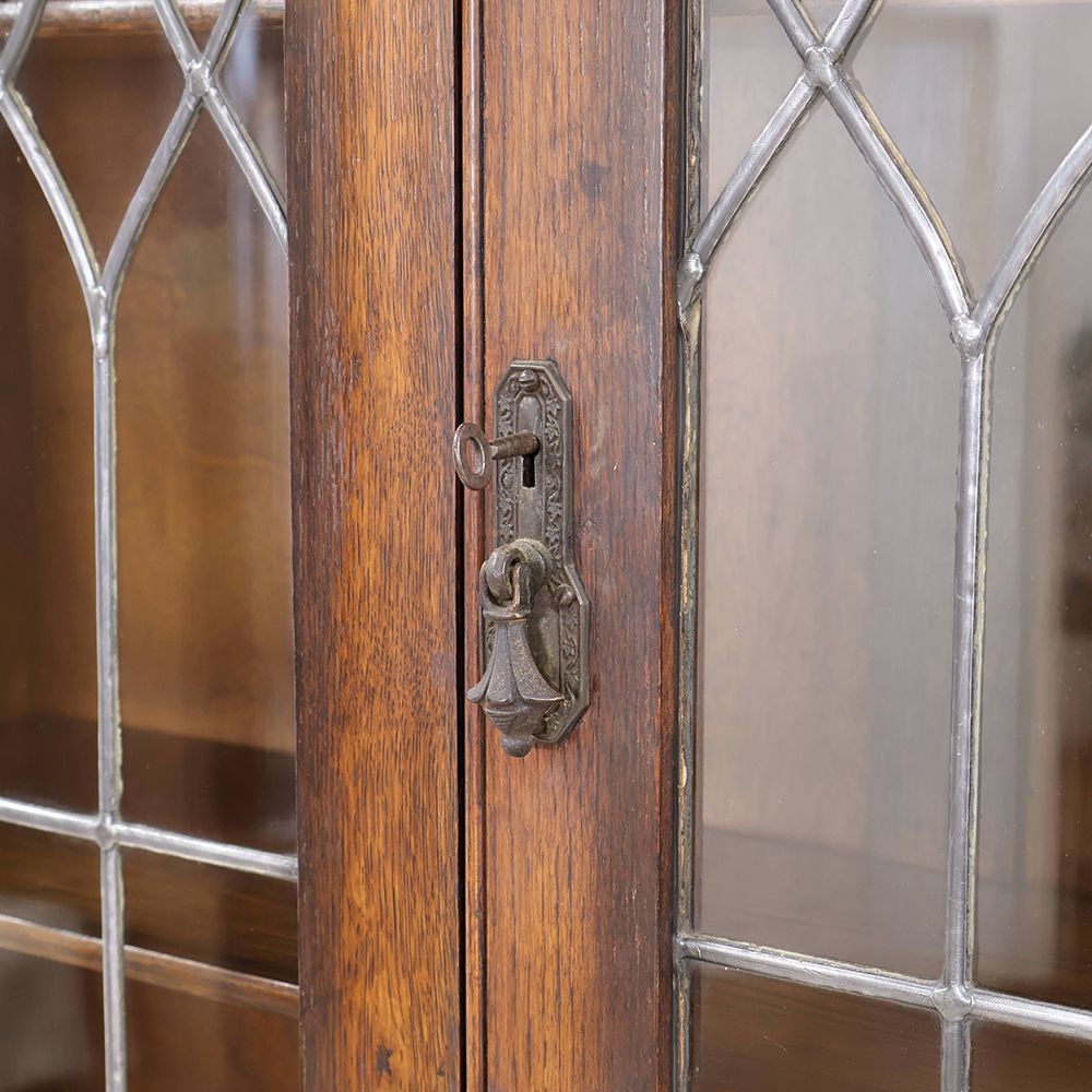 ブックケースの扉はドームガラスを組み込んだステンドグラス。