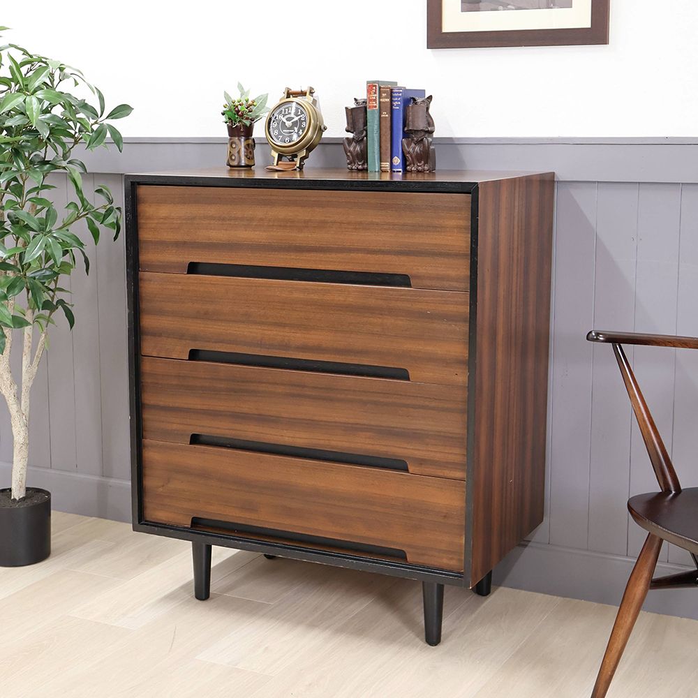 指を掛ける引出の手掛け部分は黒く塗装されてチェストのアクセントに。ウォールナットのブラウンと黒い塗装のコントラストがモダンで、とても洗練された佇まいです。