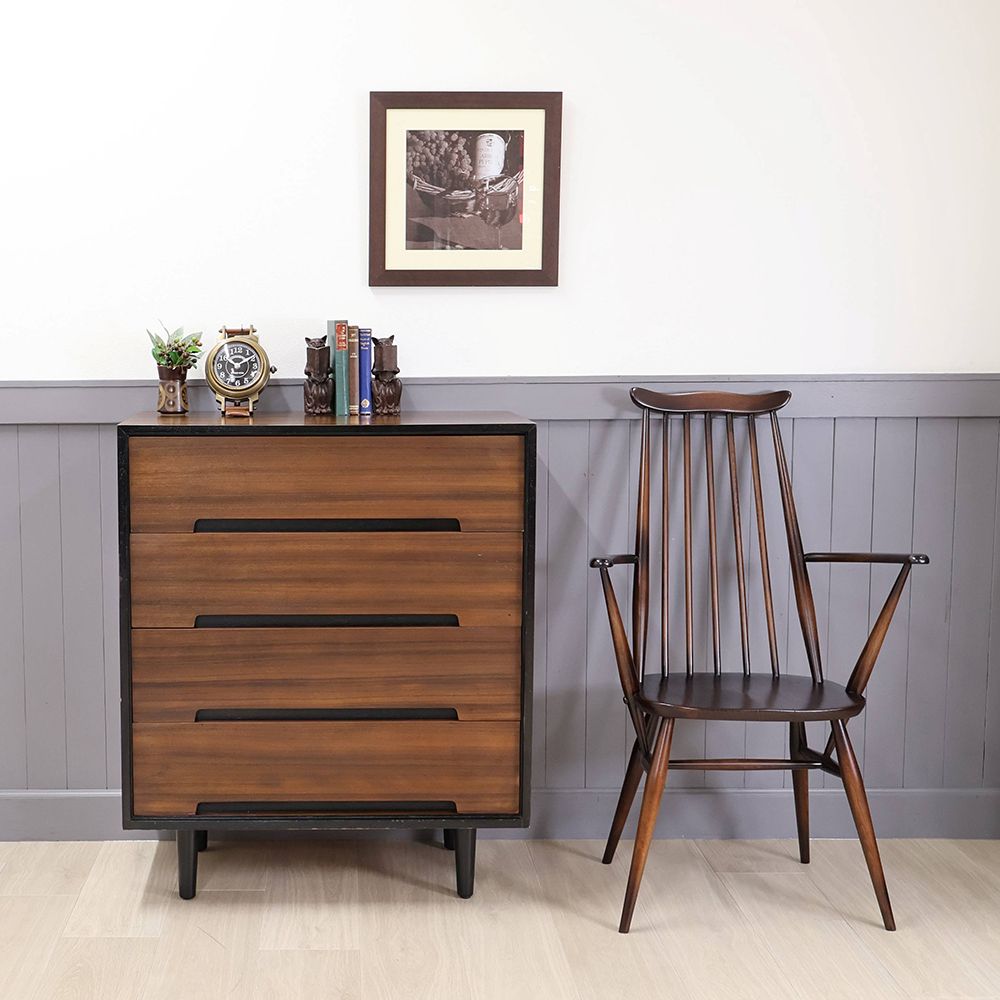 四角い形に黒くて小さな脚。1960年代最先端の「オシャレ」を形にしたStag社ヴィンテージチェスト。