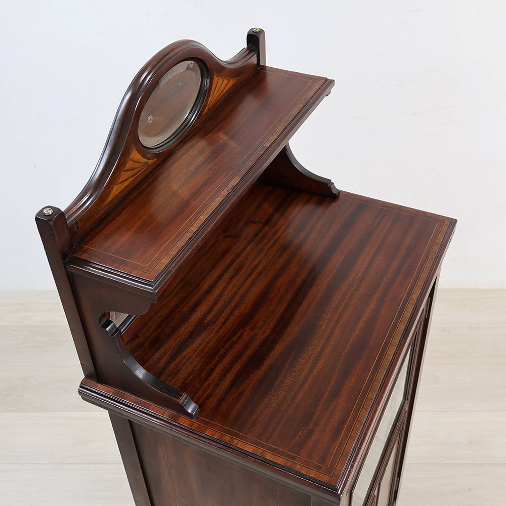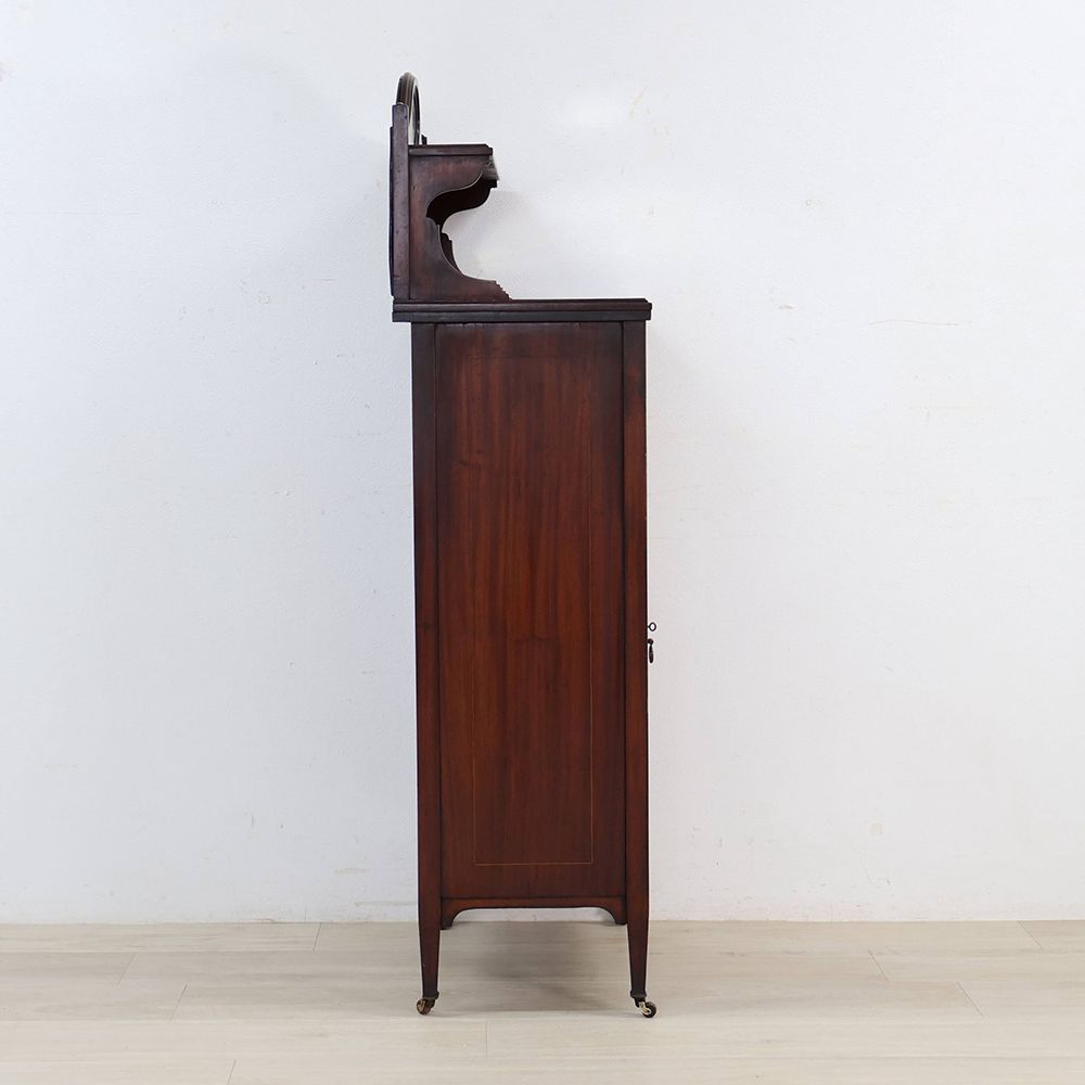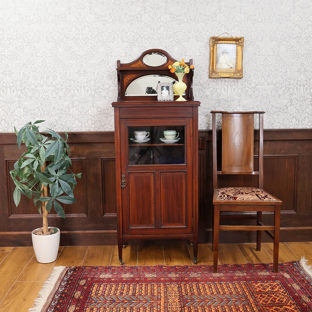 高さ141.5センチと、小さなスペースにもオシャレに配置できるキャビネットは、マホガニーの艶めきごと日常で楽しみたいアンティークです。