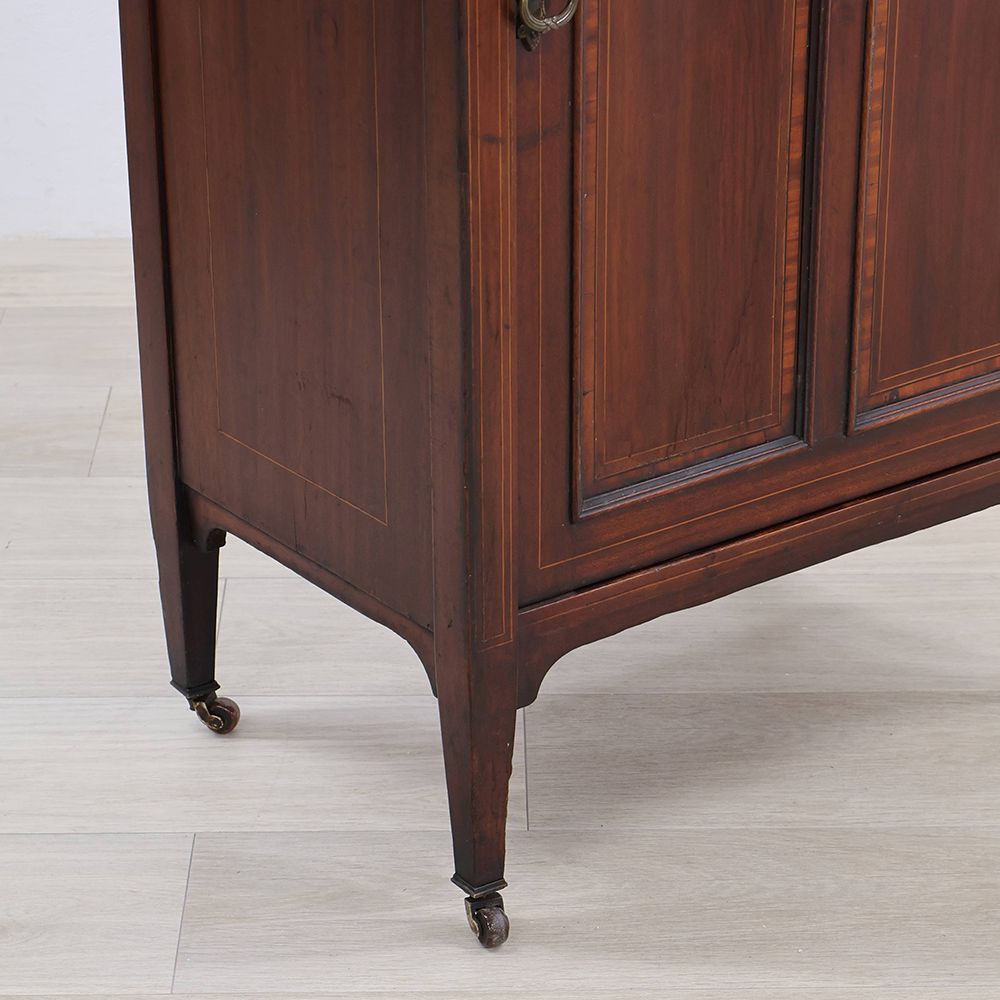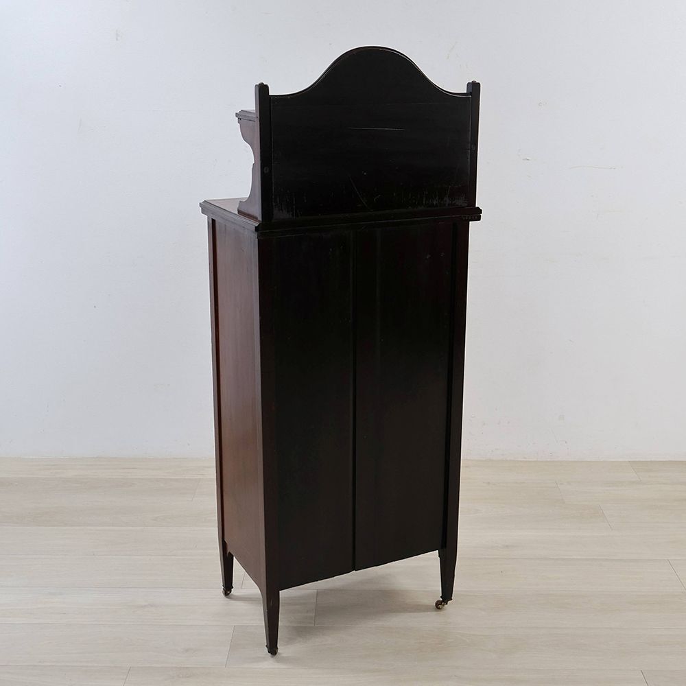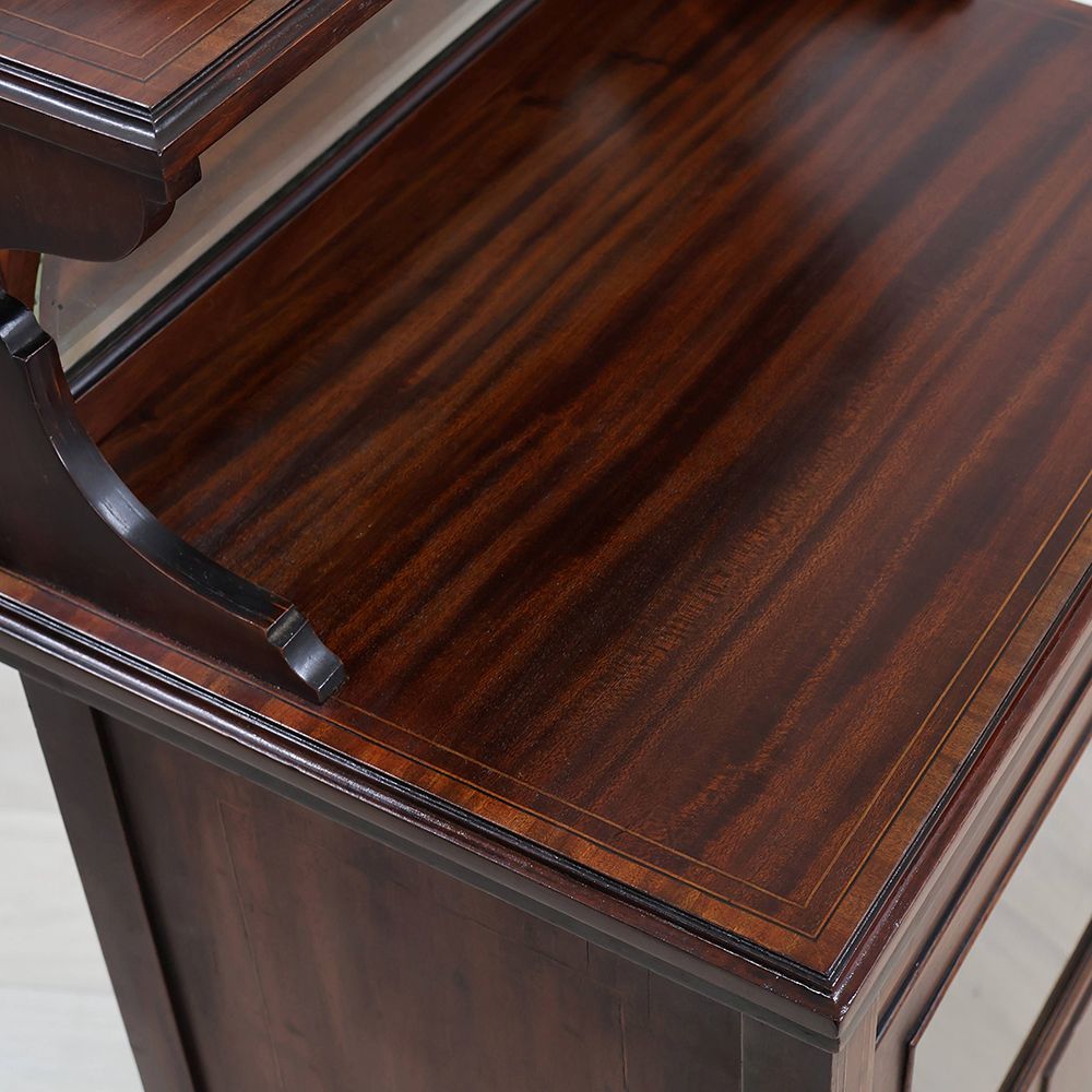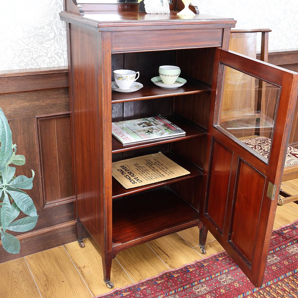 高さ141.5センチと、小さなスペースにもオシャレに配置できるキャビネットは、マホガニーの艶めきごと日常で楽しみたいアンティークです。