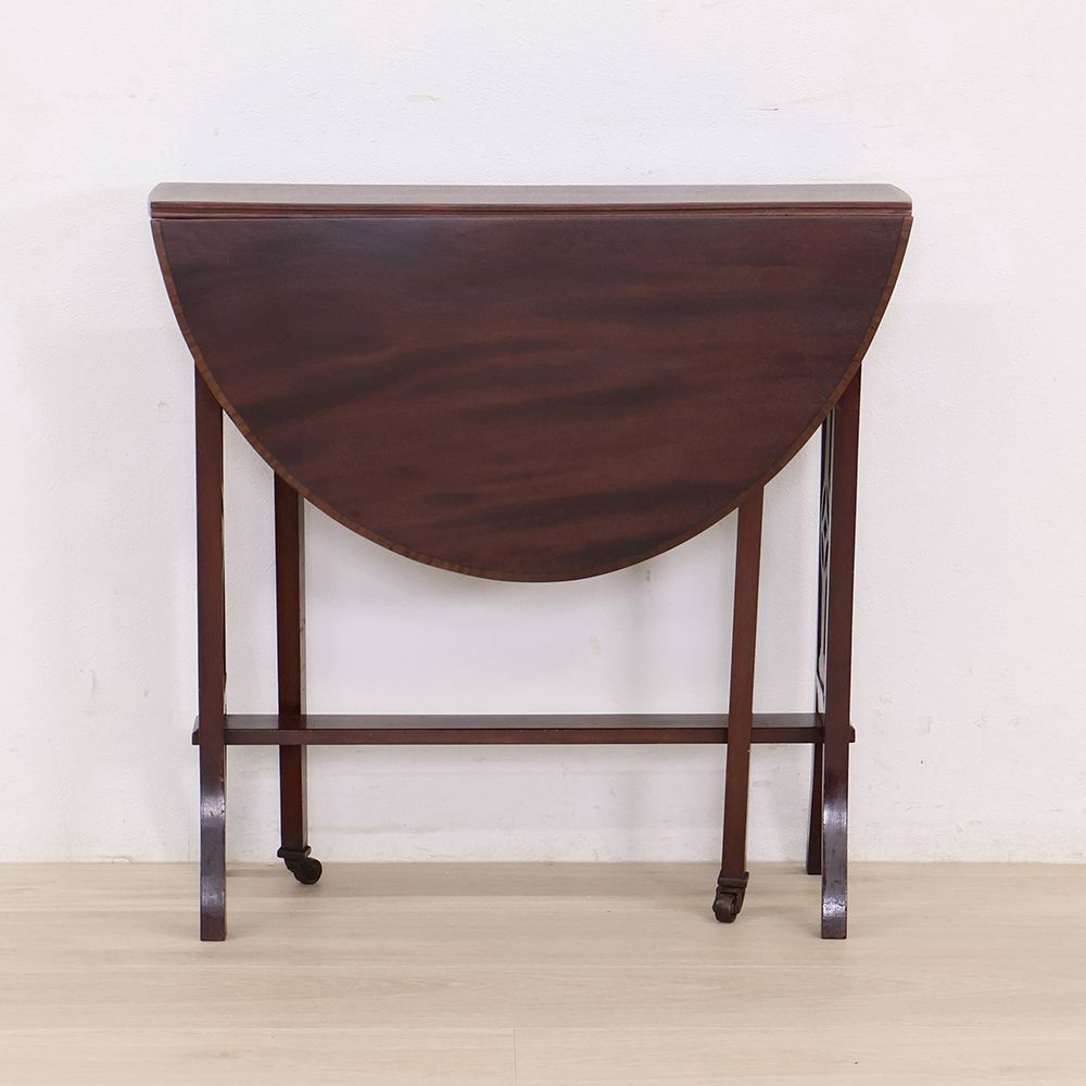 簡単な食事をとったり、友人たちと親しくお茶やお喋りを楽しんだり。コンサバトリーへ、プライベートルームへと気軽に持ち運べるオシャレな折り畳みテーブルは、当時の婦人たちにとっては大切なアイテムだったことでしょう。