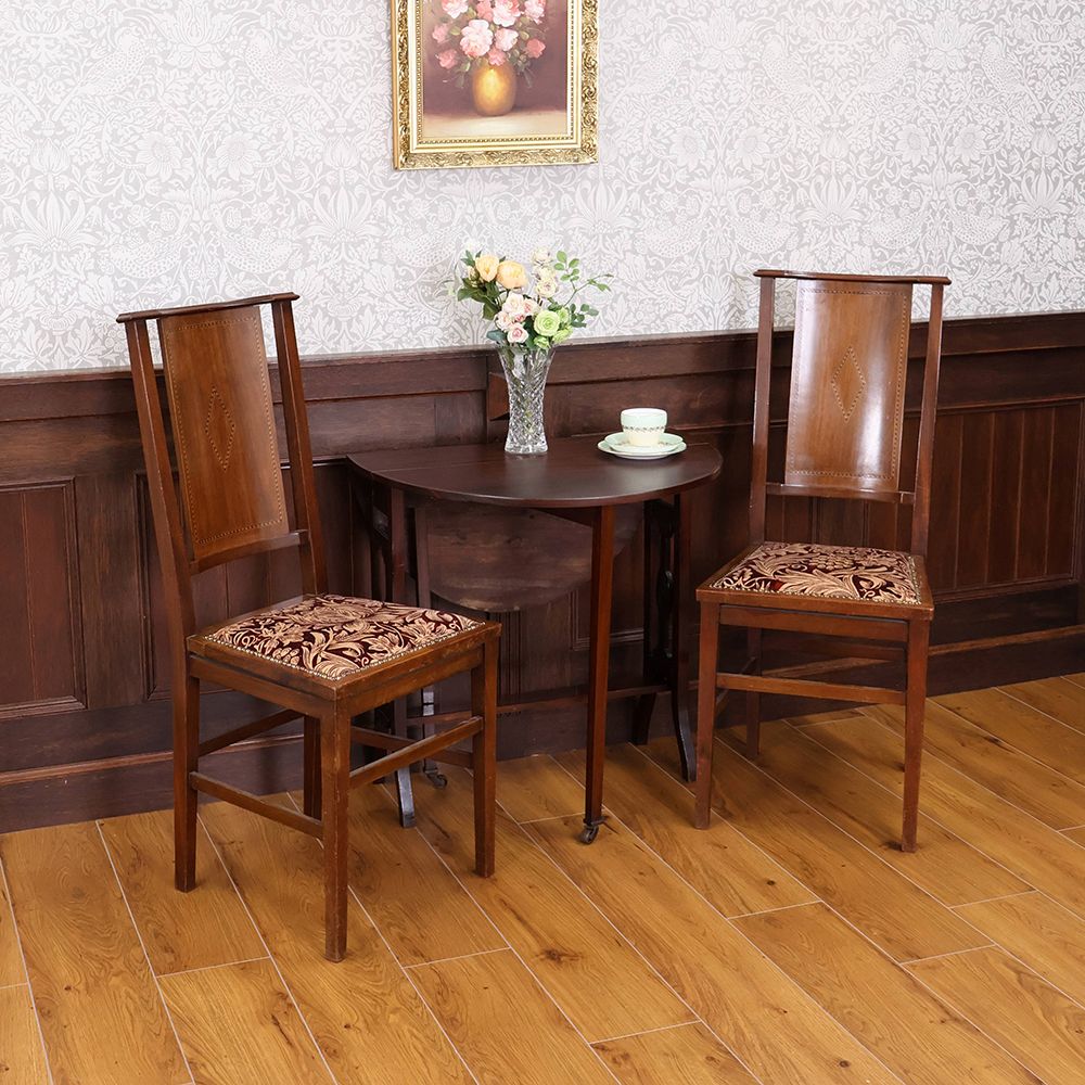少し小ぶりのサイズ感、天板を縁取る繊細な象嵌細工、華美に飾り立てないスッキリとした形。テーブルを広げるたびに心ときめく魅惑のアンティークです。