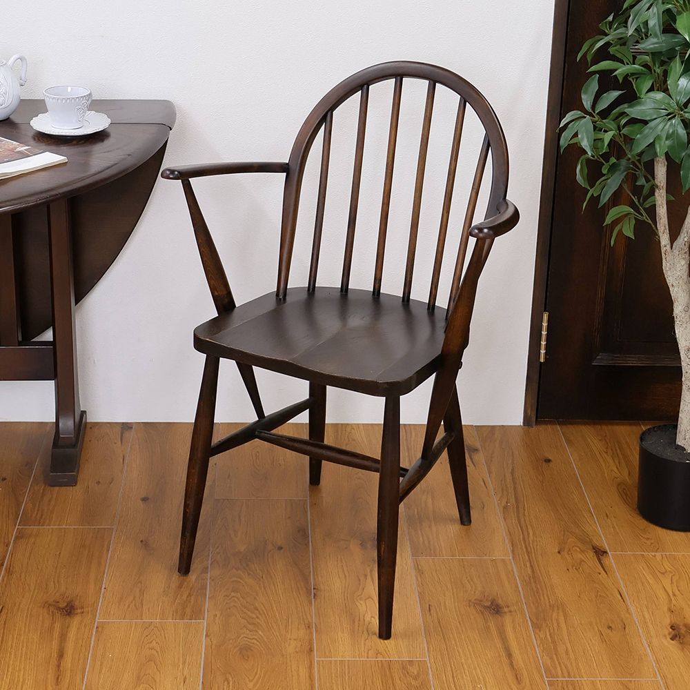 オークのように深い色に染められた、アーコールのアームのチェア。
