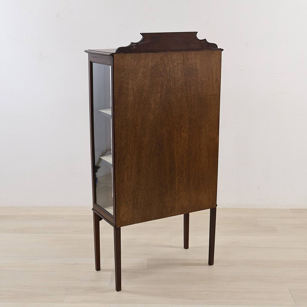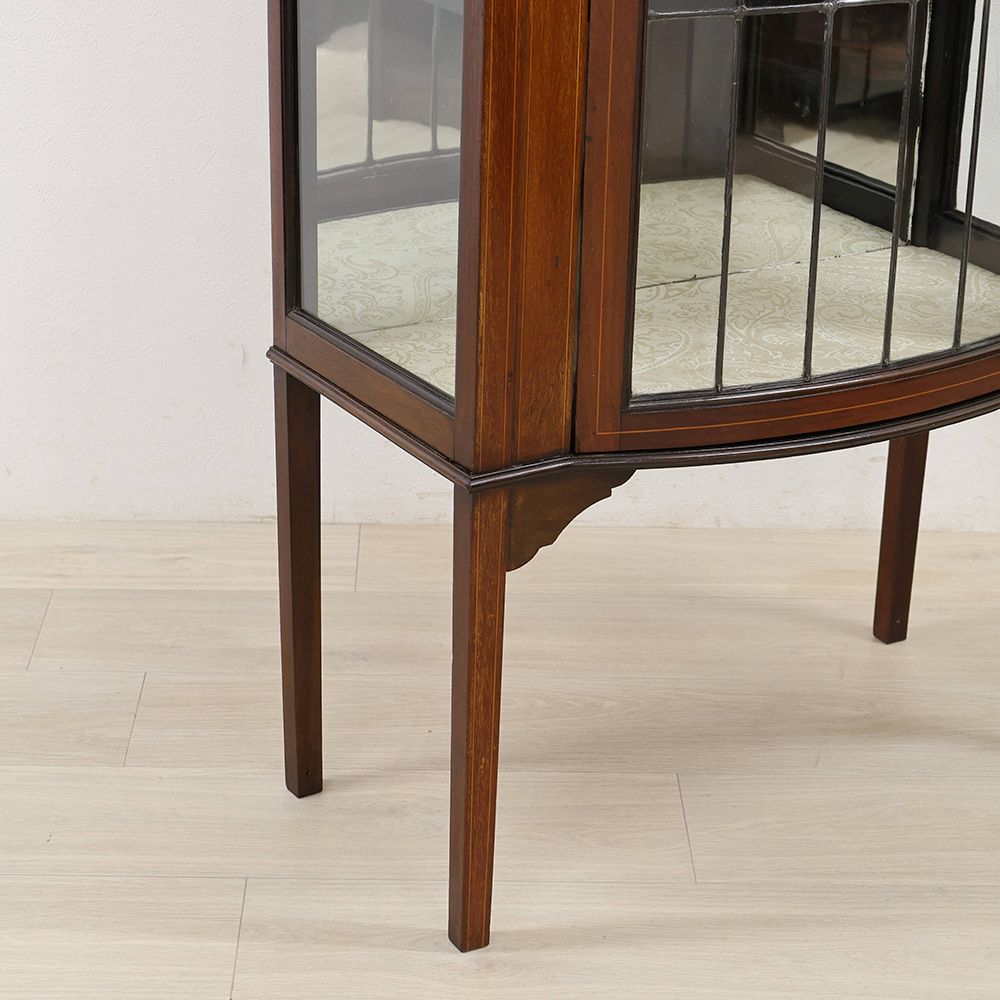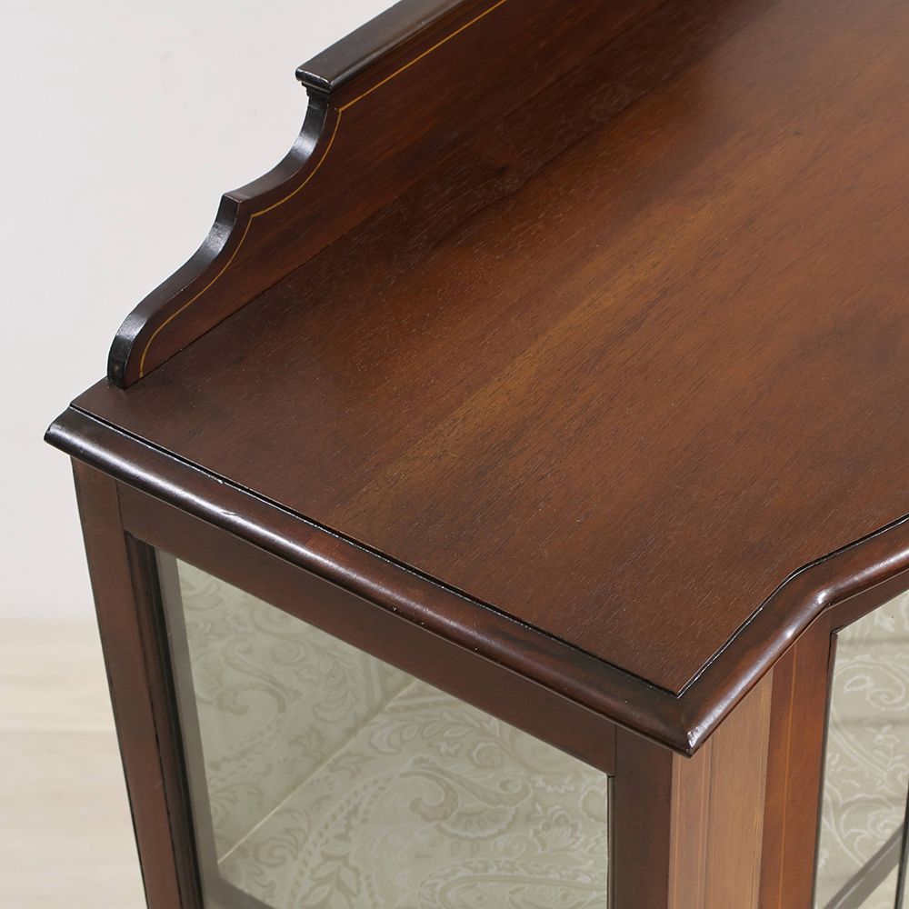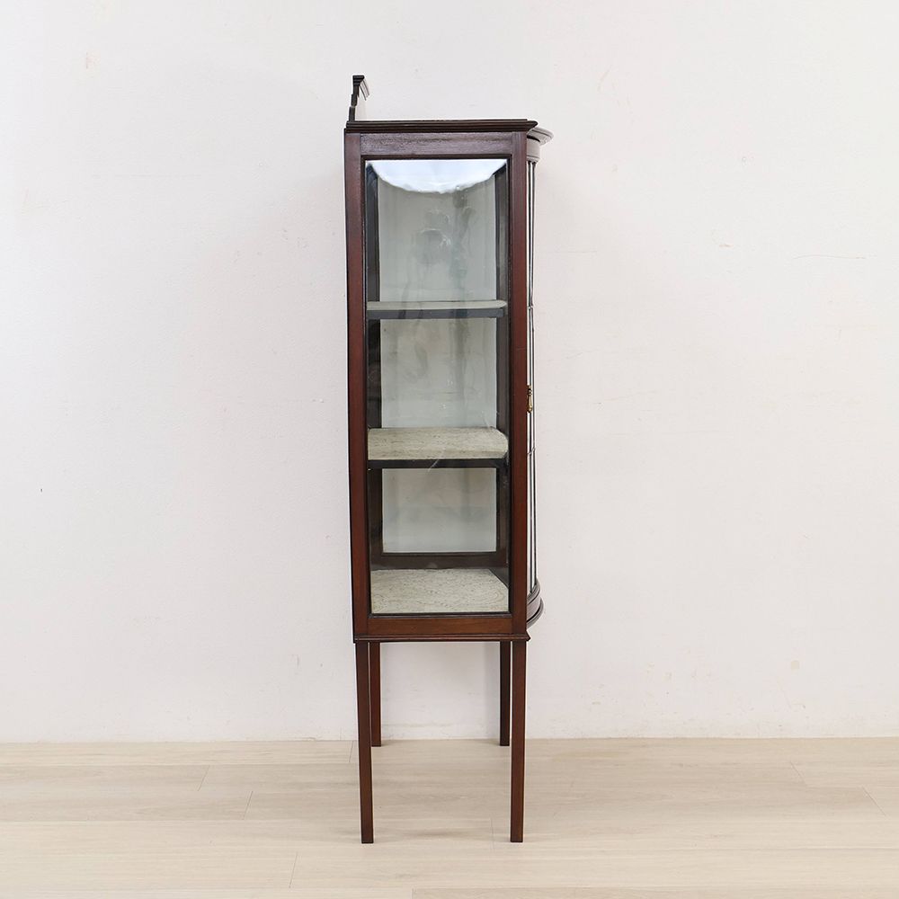 正面の扉だけでなくサイドにもガラスを組み込んでキャビネット内に光を取り込むディスプレイキャビネット。