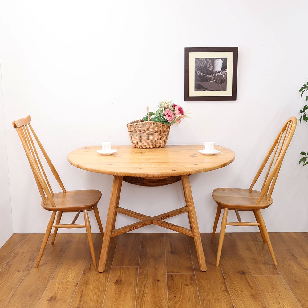 今回入荷したのはパイン材の温かな手触りが素敵なドロップリーフテーブル。