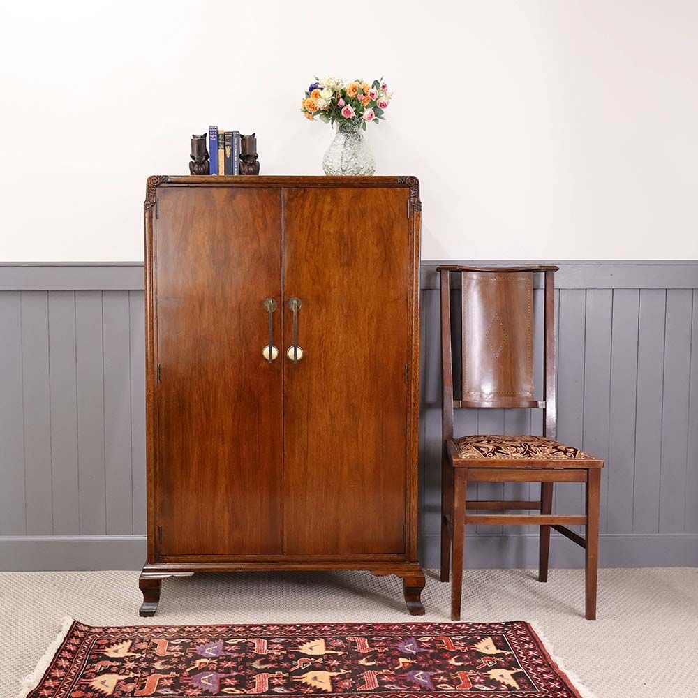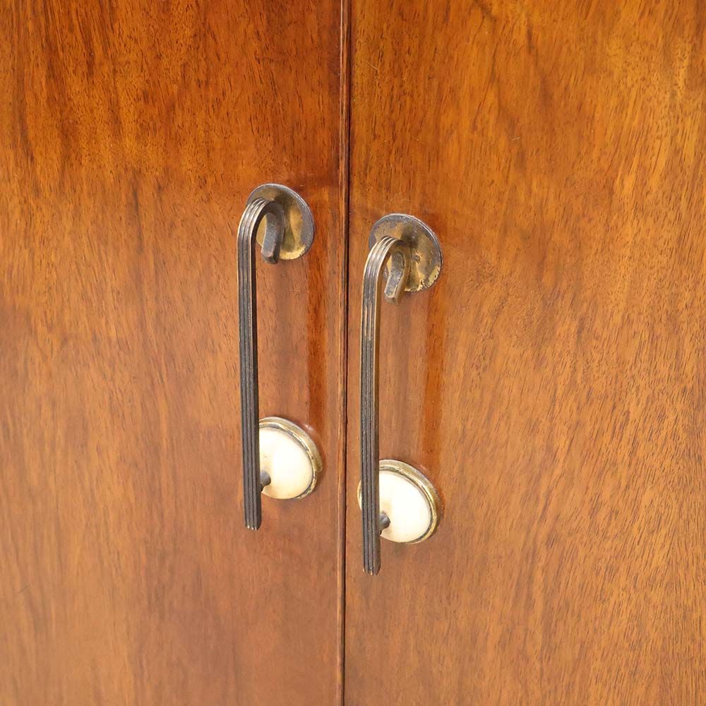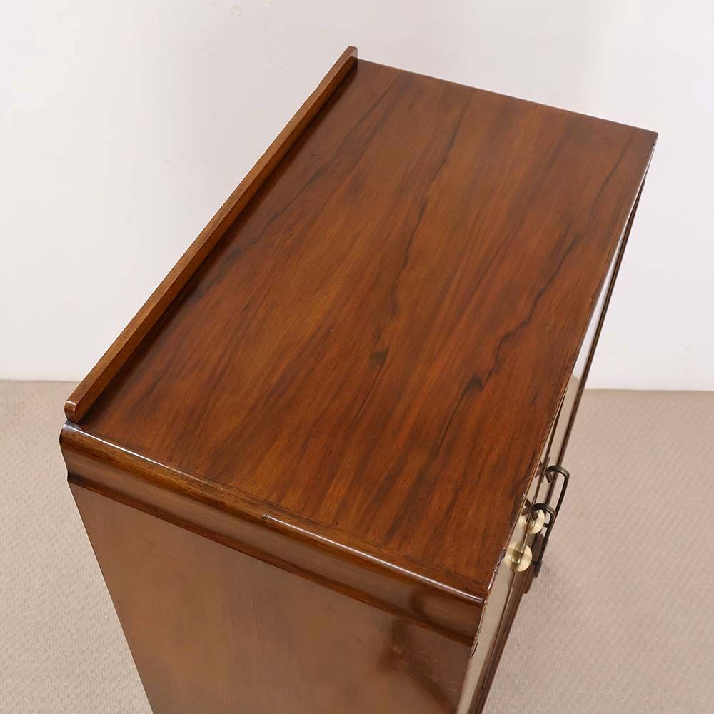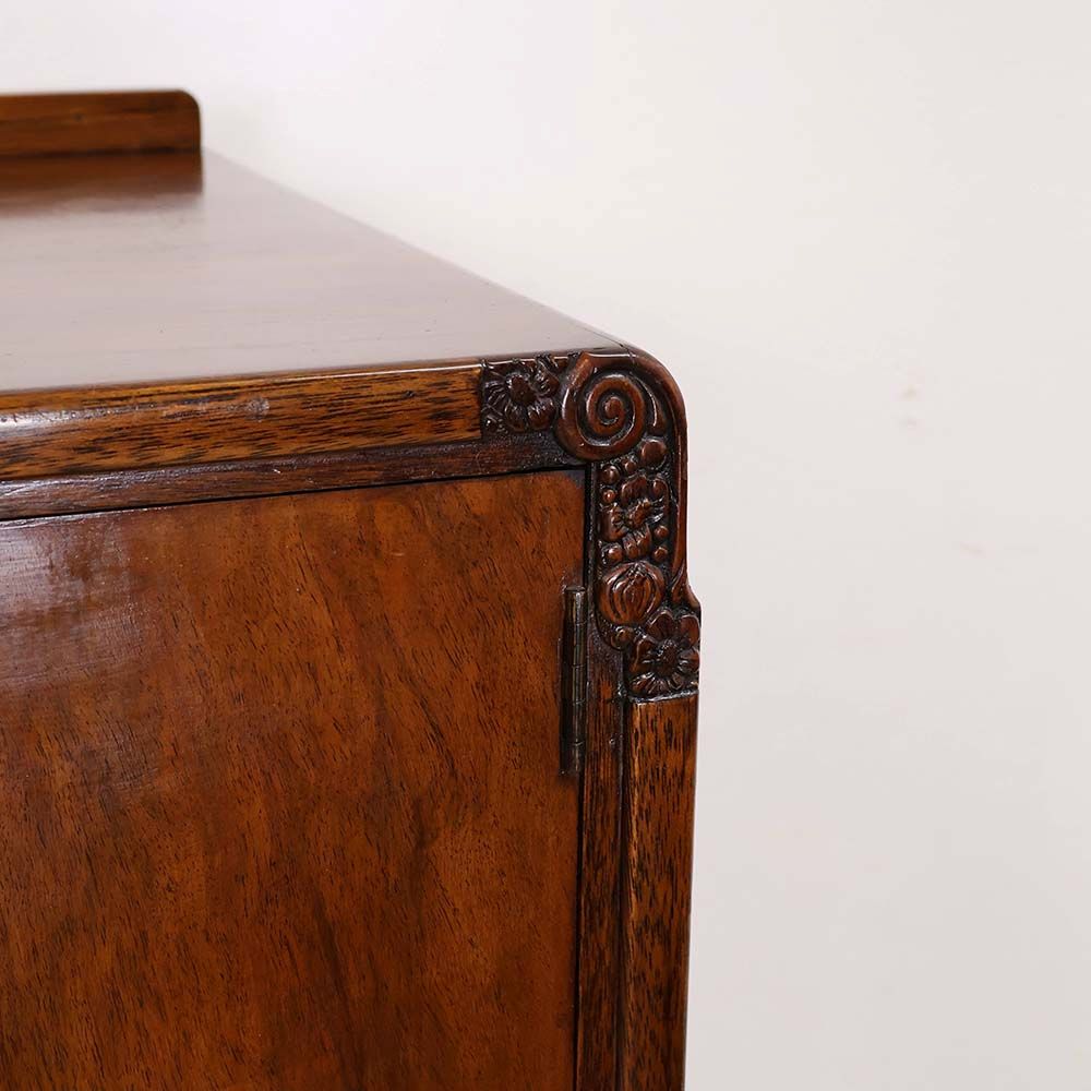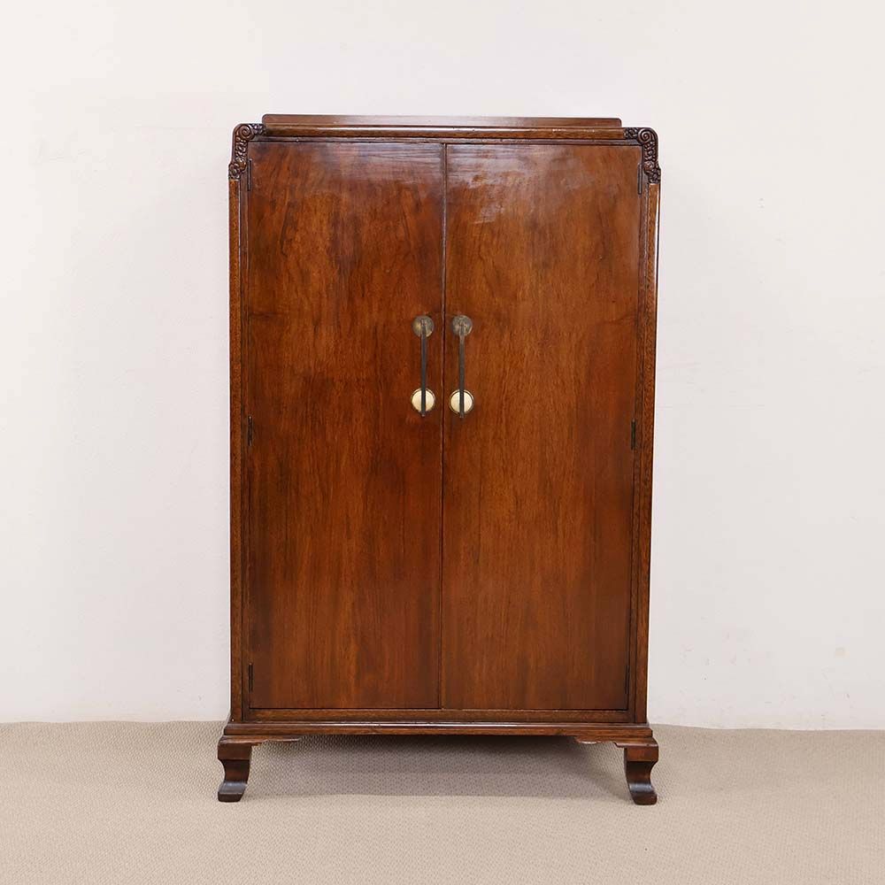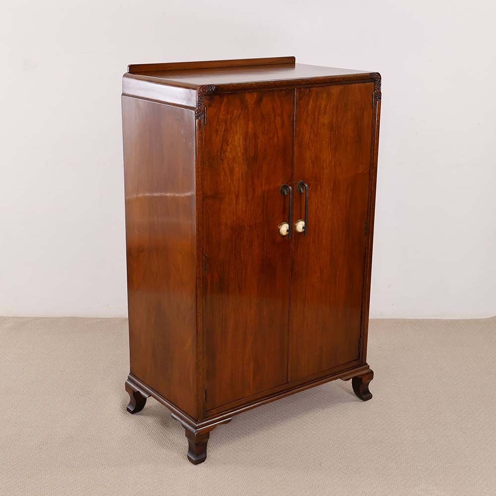 高級家具に用いられるマホガニー材を贅沢に用いたチェストキャビネットは、形の良い脚や彫りの装飾に昔ながらの伝統が感じられるのですが、扉のハンドルだけはアールデコ調のモダンデザイン。
