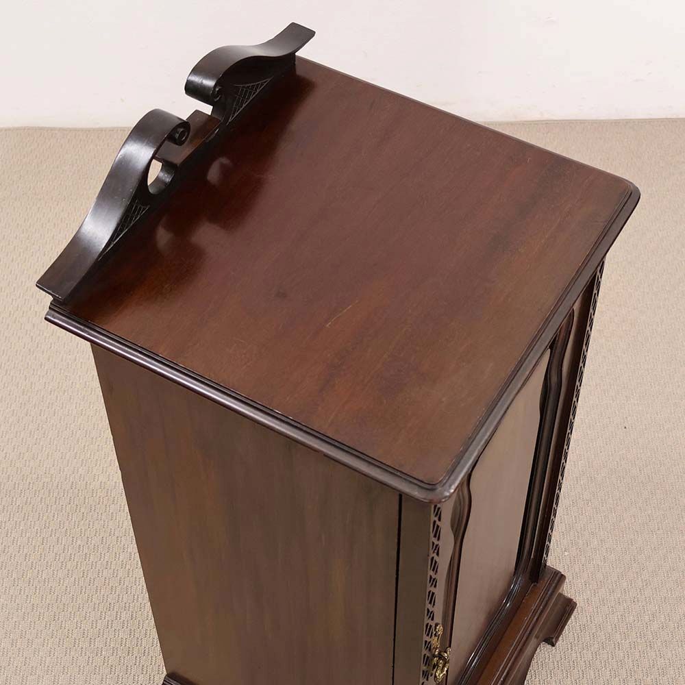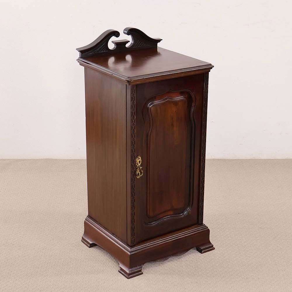 コンパクトながら気品のある趣きが素敵なベッドサイドキャビネットは、トップにあしらった飾り(ペディメント)がオシャレ。