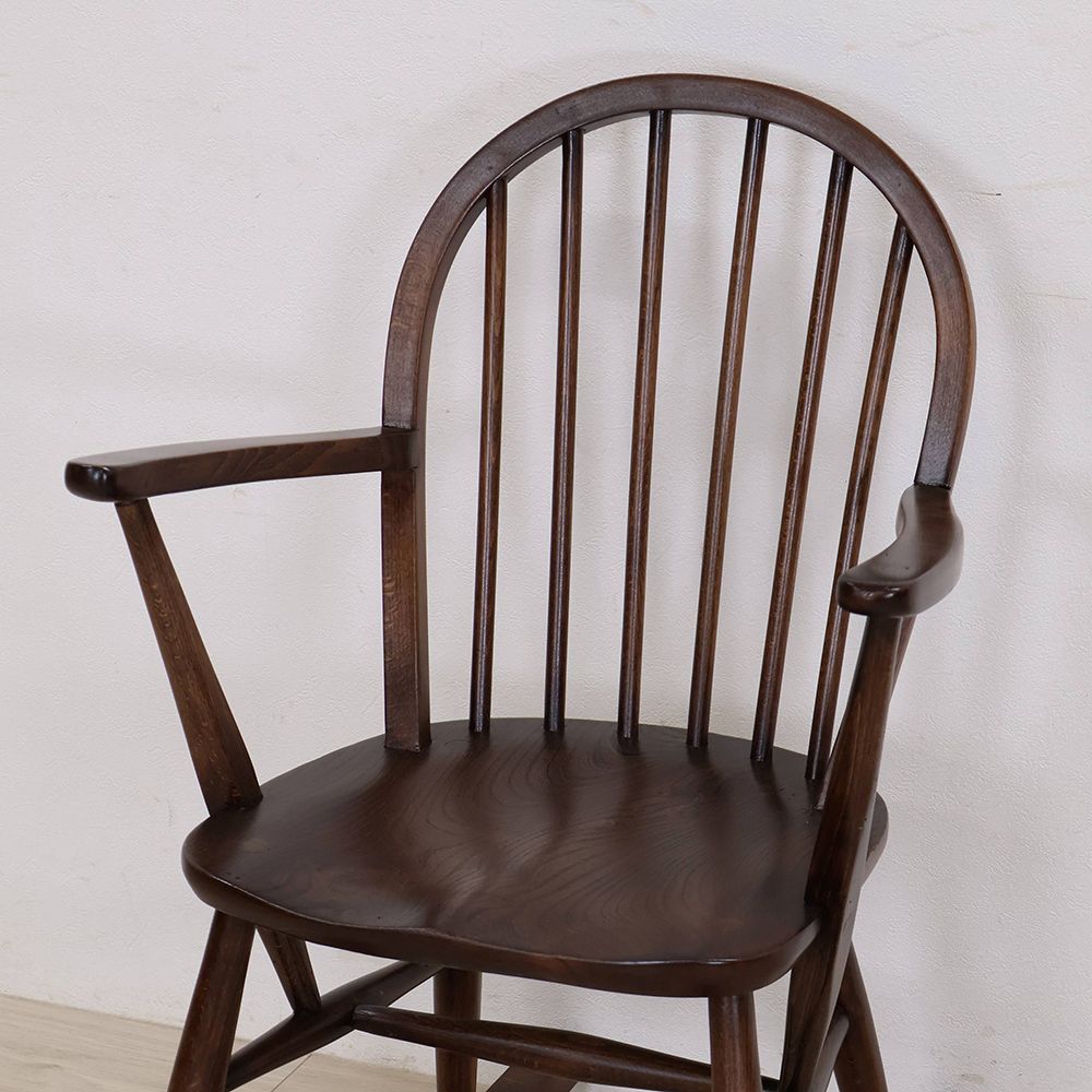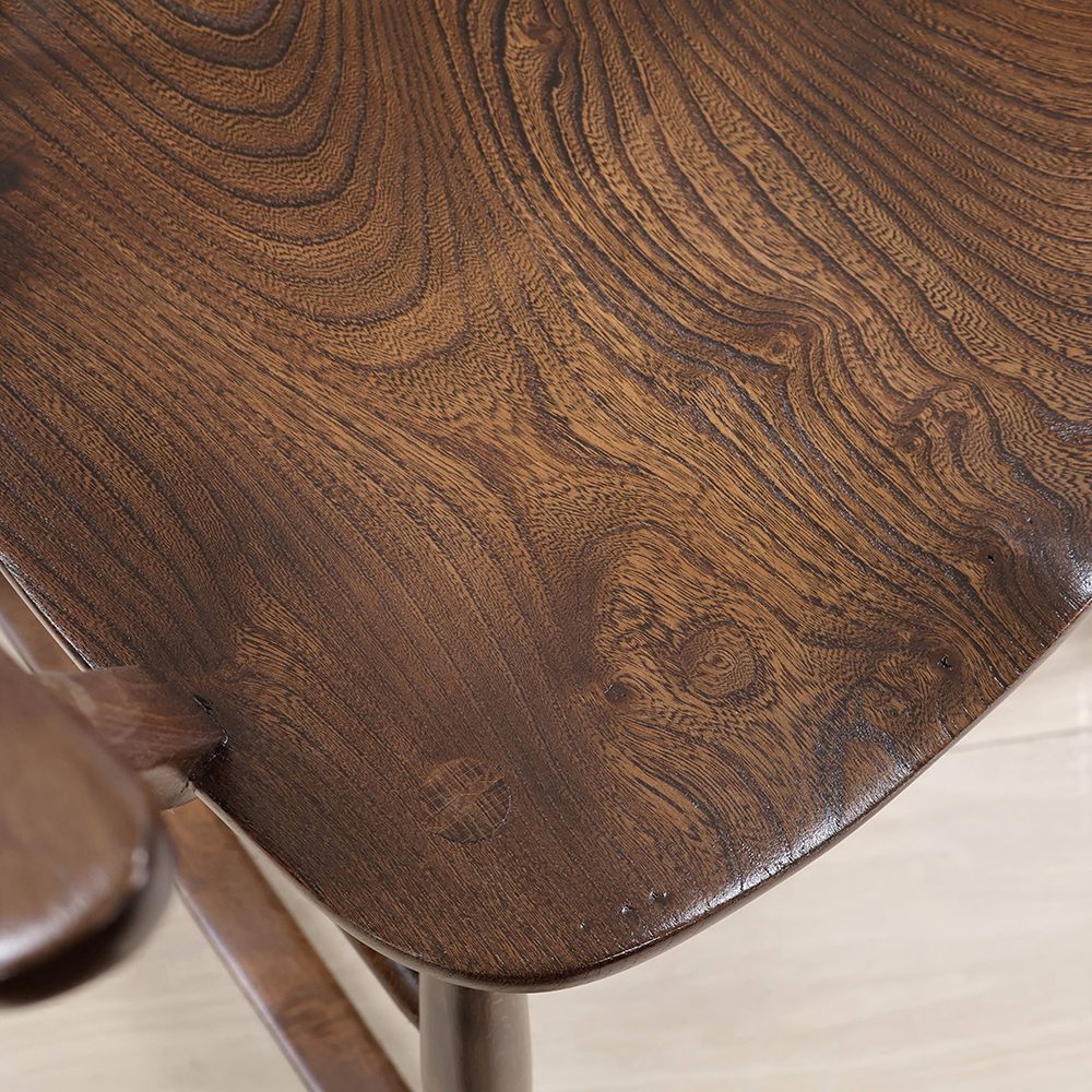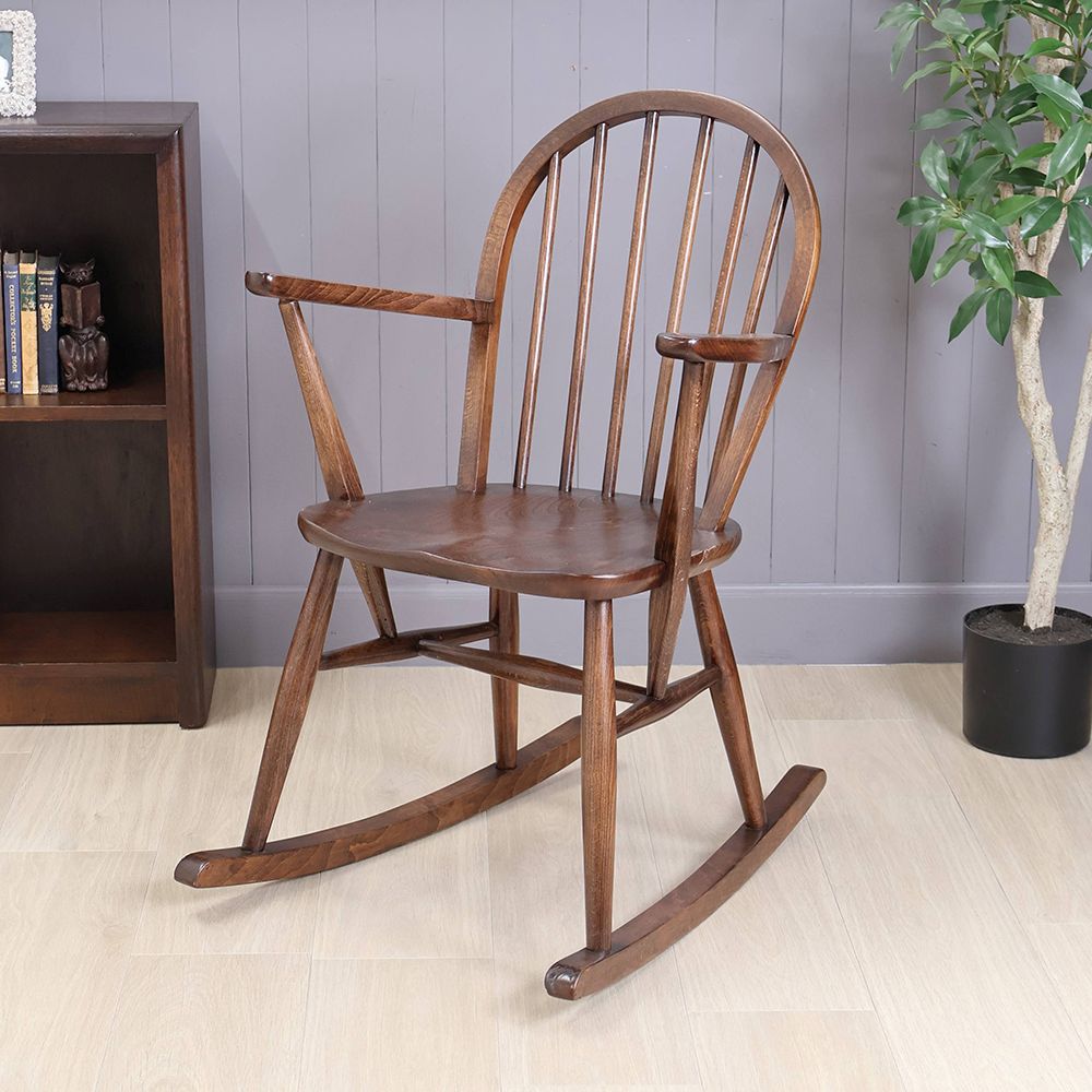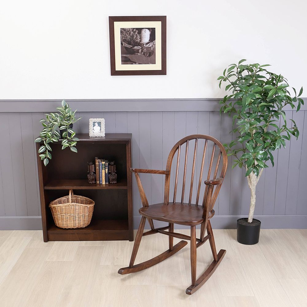 優しいブラウン色が素敵なこのロッキングチェアは、アームや座面はツヤツヤの深い色。きっとたくさん座って磨かれてきたのでしょう。使われてきた長い時間に物語を感じる味わい深い風合いが素敵です。
