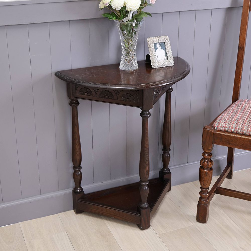 ハーフムーンテーブルはヨーロパでは小さなサイドテーブルとして使うほか、お部屋の入口やホールなどに置いて、照明を載せたり花を飾って楽しまれています。