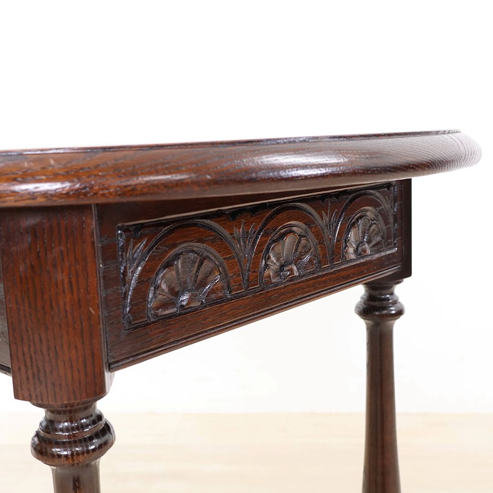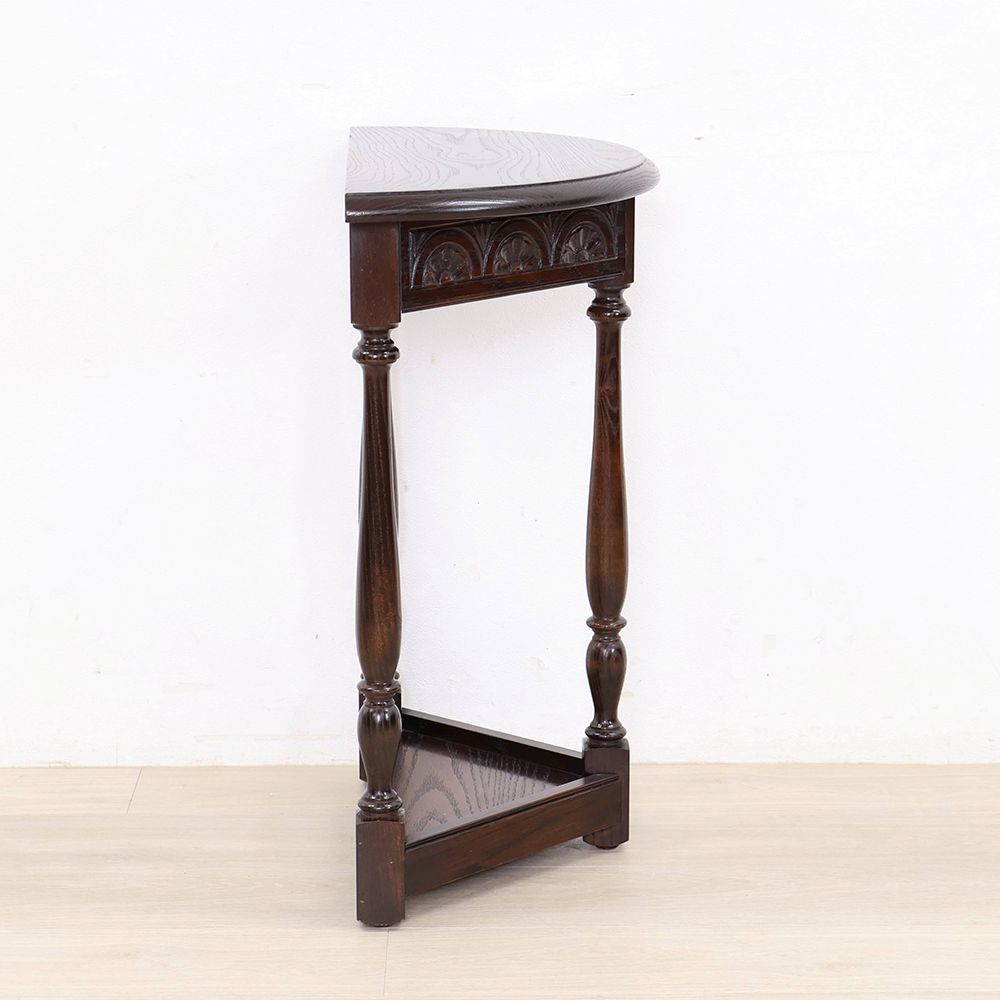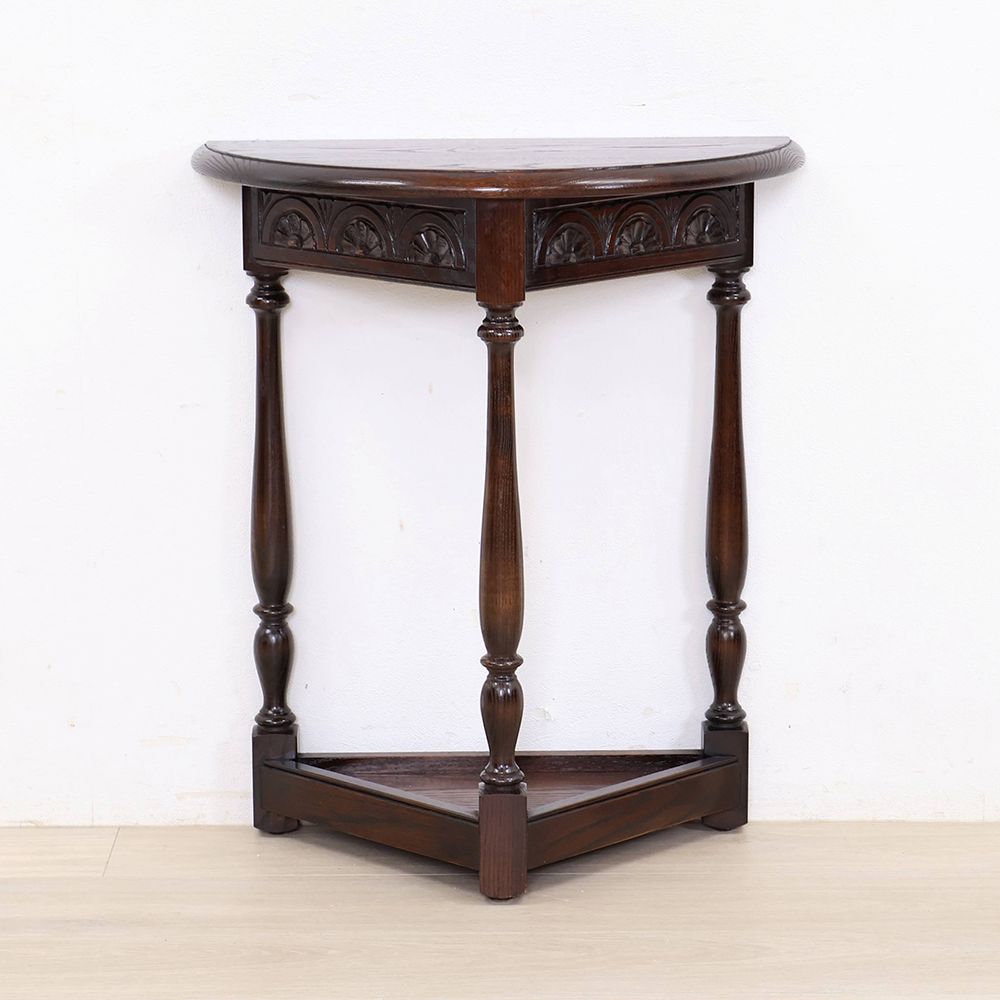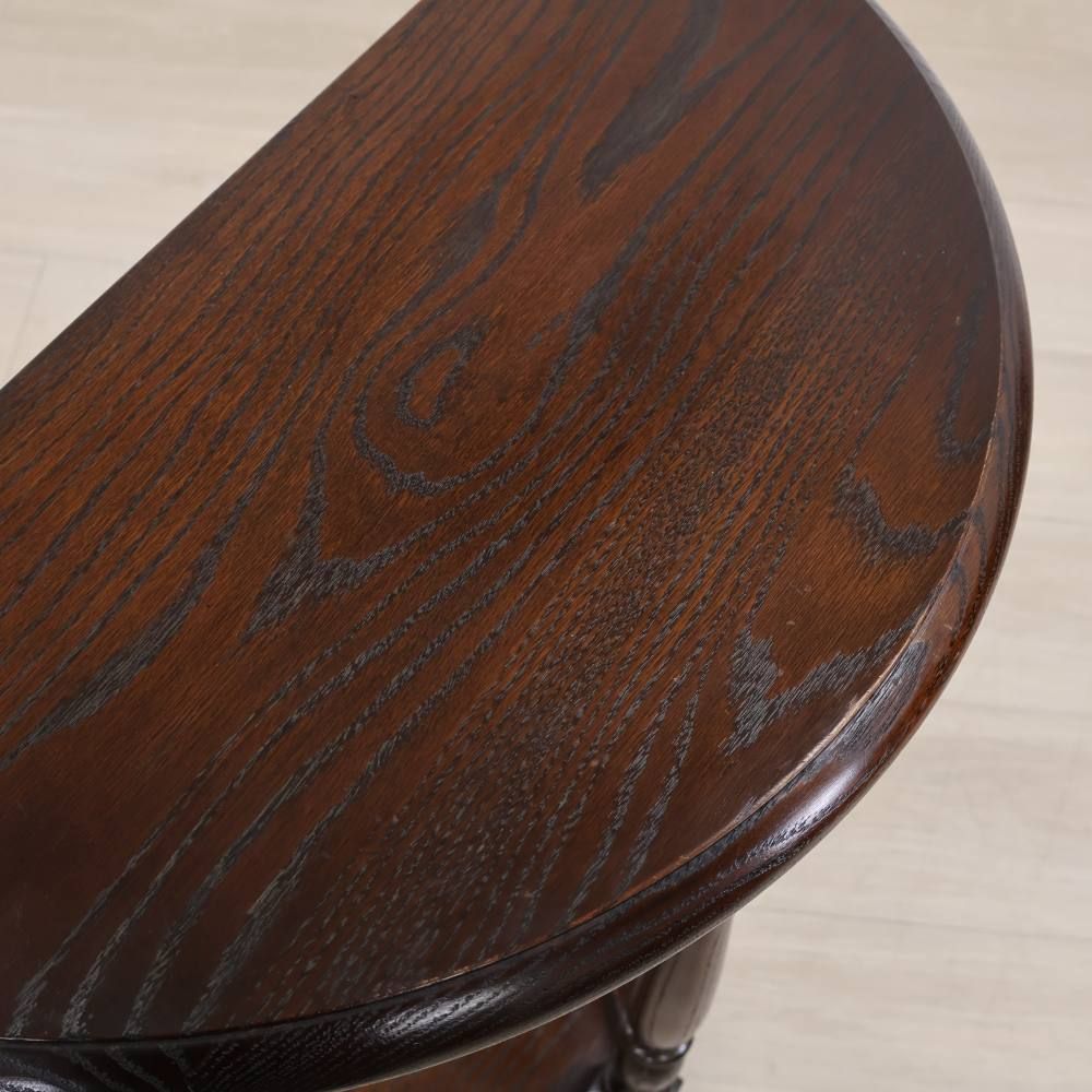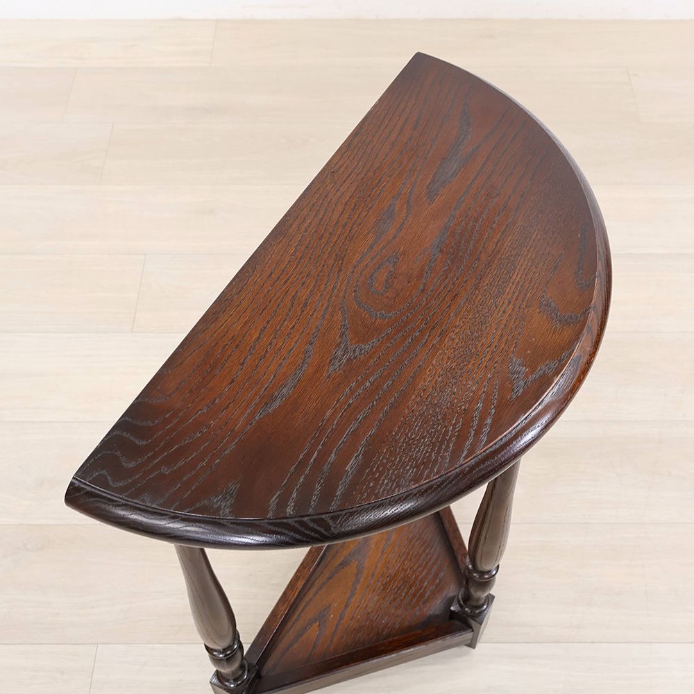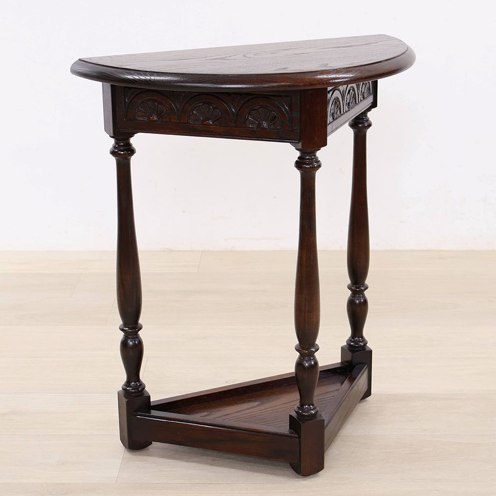 半円型の天板を半月になぞらえた「ハーフムーン」テーブル。テーブル下の幕板(脚と脚の間の板)には「ルネット」と呼ばれる装飾を彫り込んだ、オシャレなクラシックスタイルです。