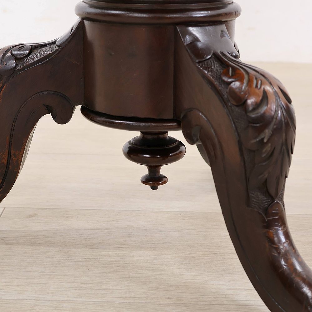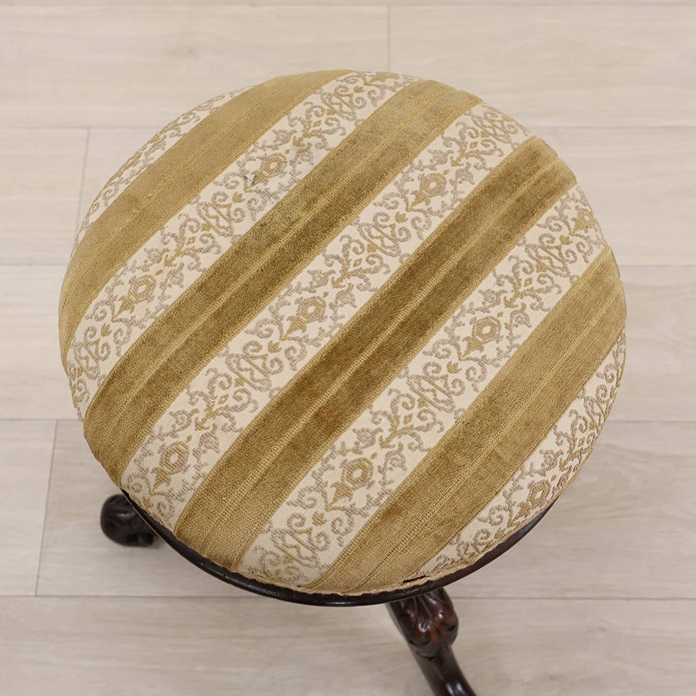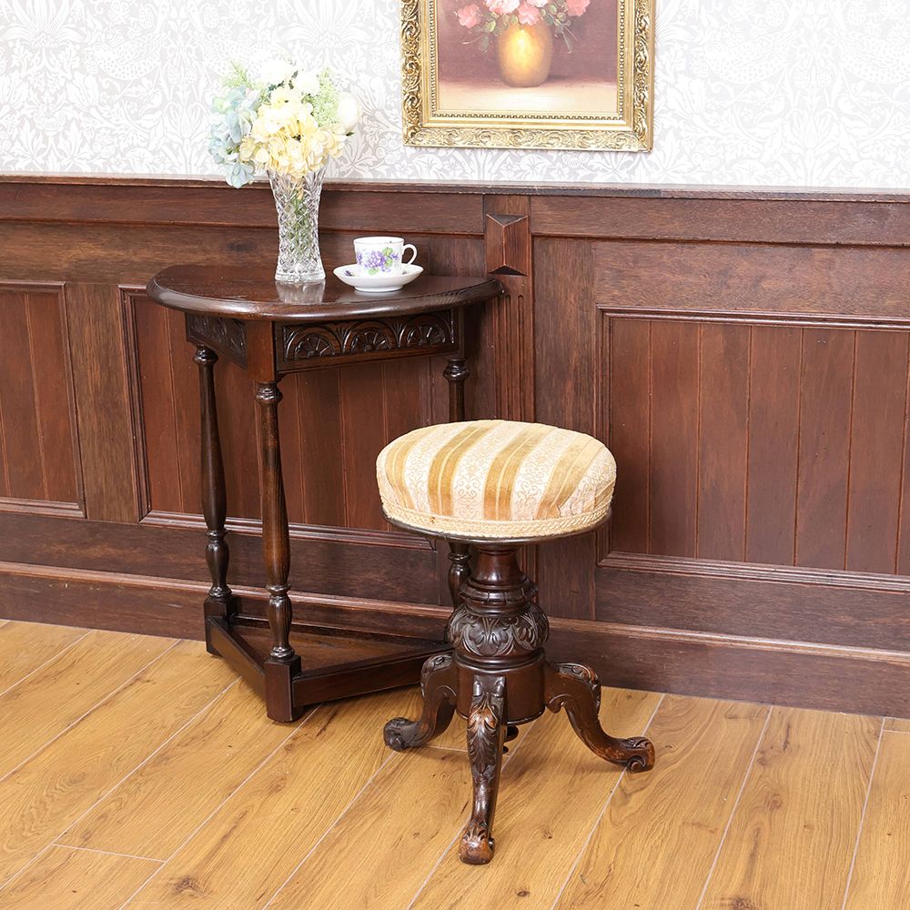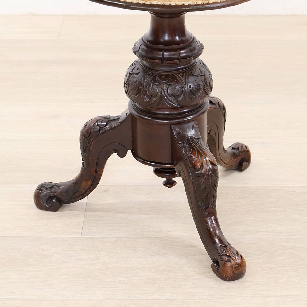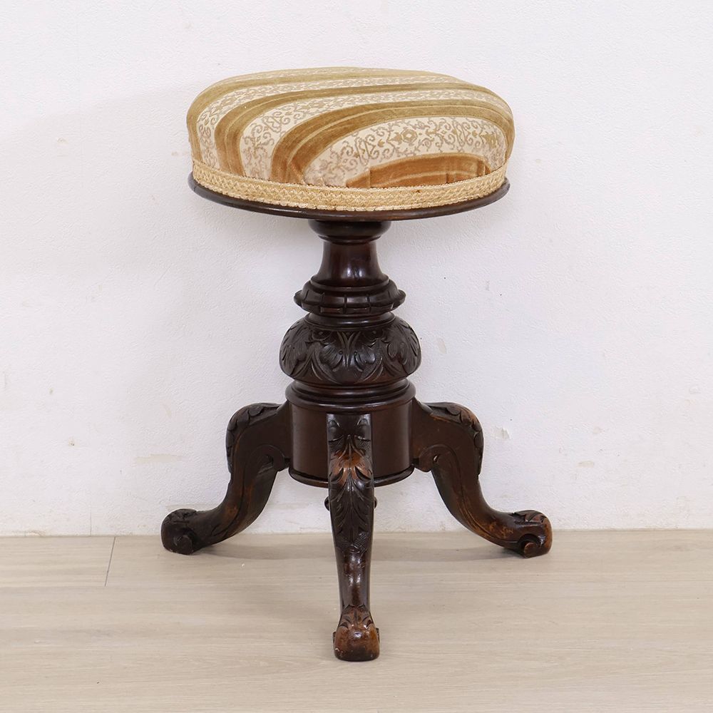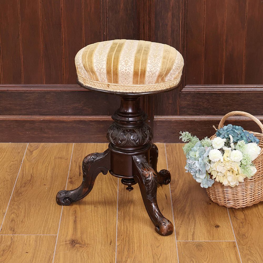 高級材マホガニーを用い、装飾を凝らした贅沢なピアノスツール。