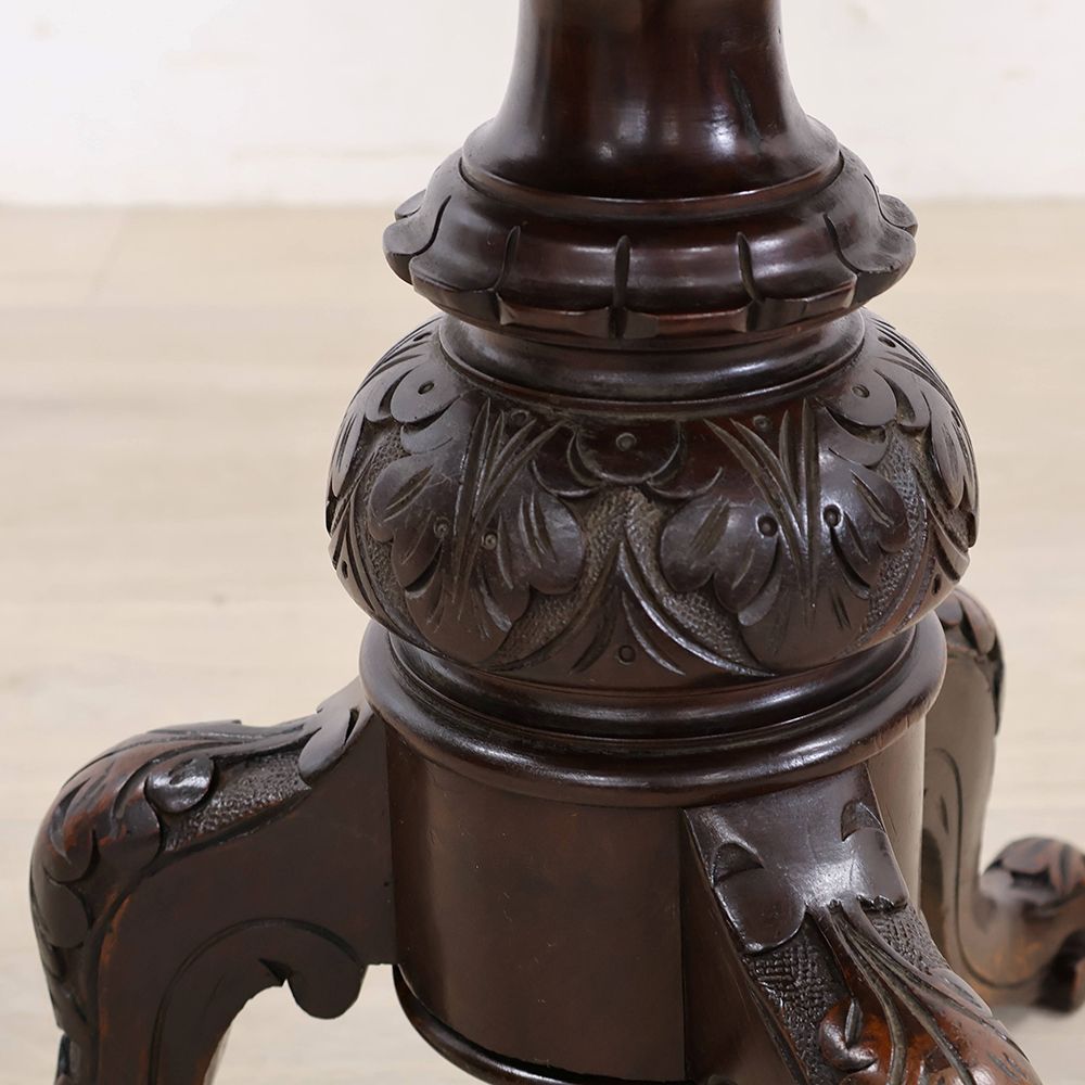 脚はトライポッド(トリポッド)と呼ばれる3本足で、多少の凹凸のある床面でもガタガタしづらく安定感があります。ワインテーブルによく見られる優雅な形です。