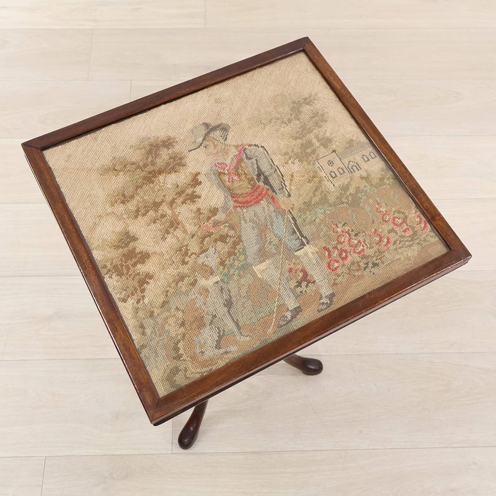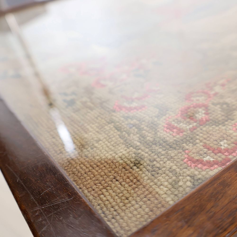 このテーブルの天板は、なんと手刺繍をほどこしたもの。