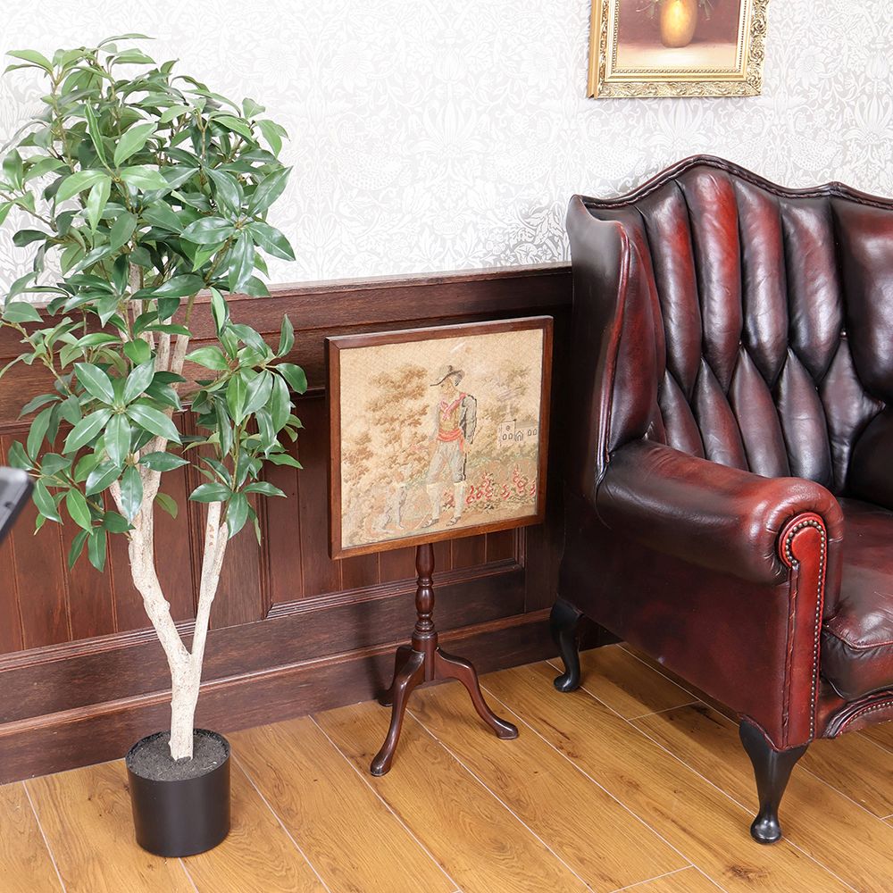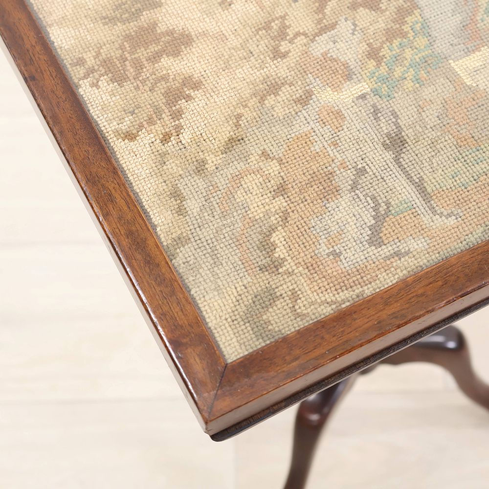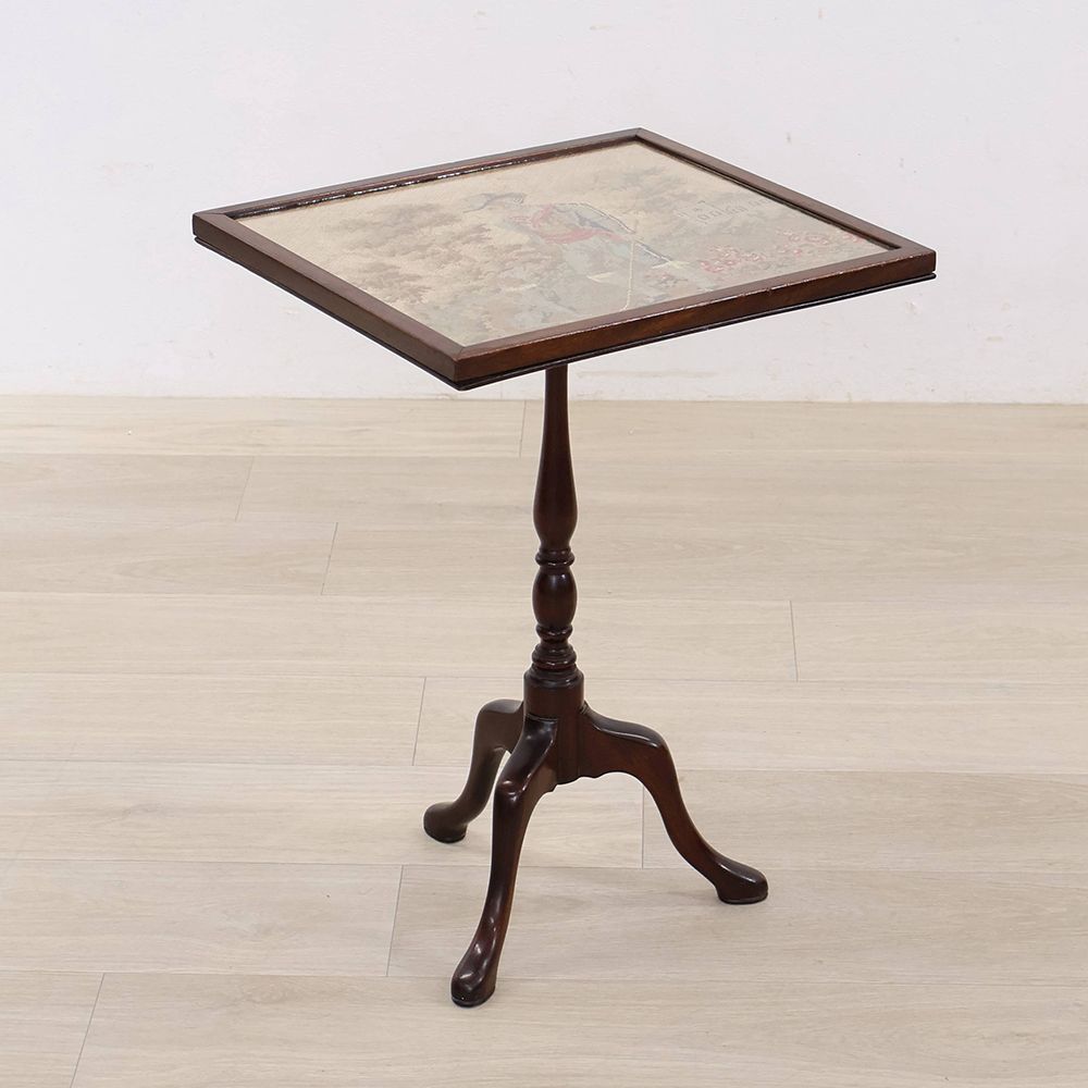 ゆったりと過ごす時間にふさわしい、刺しゅう入りのティルトトップテーブルです。