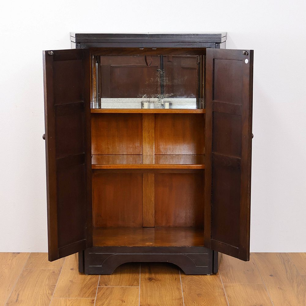 試しに扉を開けてみると、上段の棚はミラー張りになっていて、華やかな雰囲気。この棚へグラスを並べたら、きっとミラーとグラスが光を反射してキラキラ輝くんじゃないかしら。