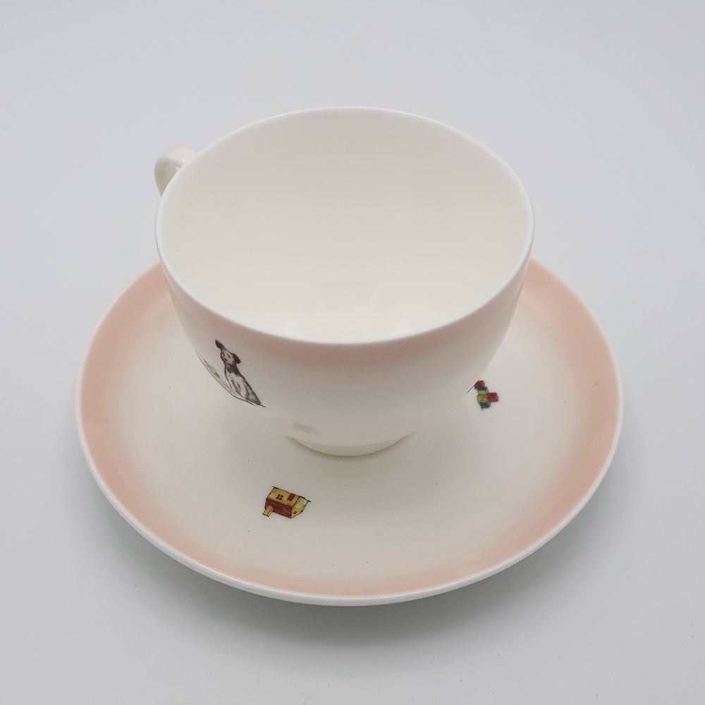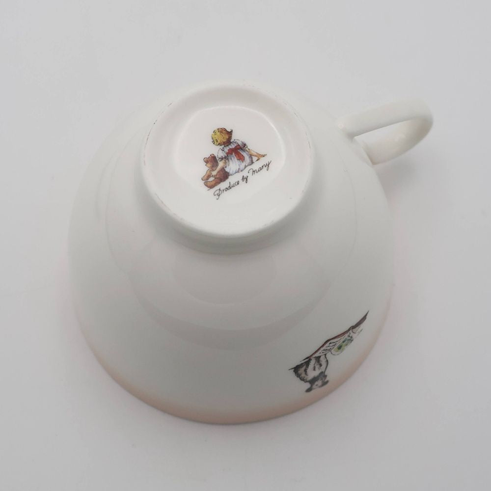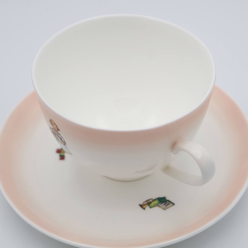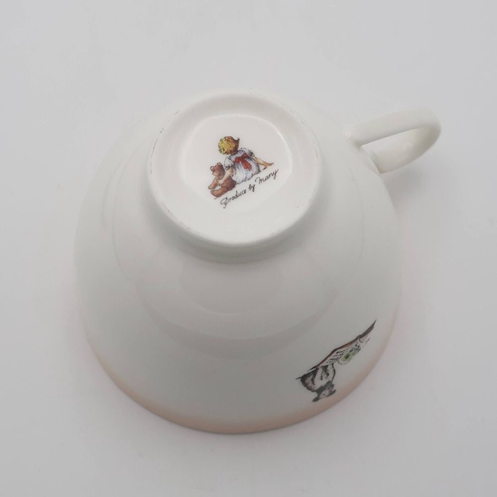 カップの中央に描かれたのは、大切そうにテディベアを抱きしめる小さな女の子。その愛らしい佇まいを眺めているだけで、ふっと心がほどけていくような温もりに包まれますね。