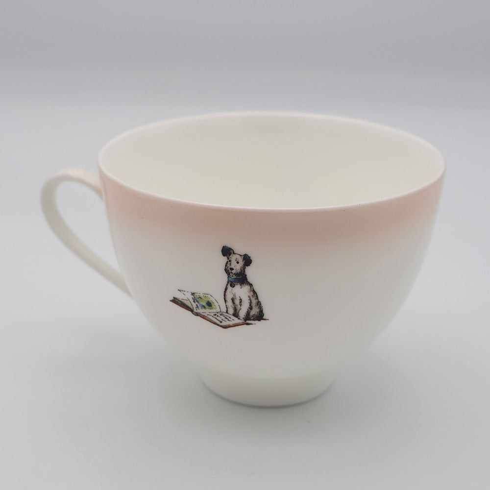 カップをくるりと回すと、絵本を読むワンちゃんが登場します。
