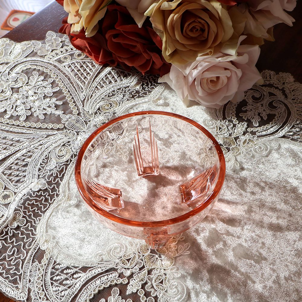 華やぐアプリコットピンク♪ ガラス脚付きボウル VC114-195001
