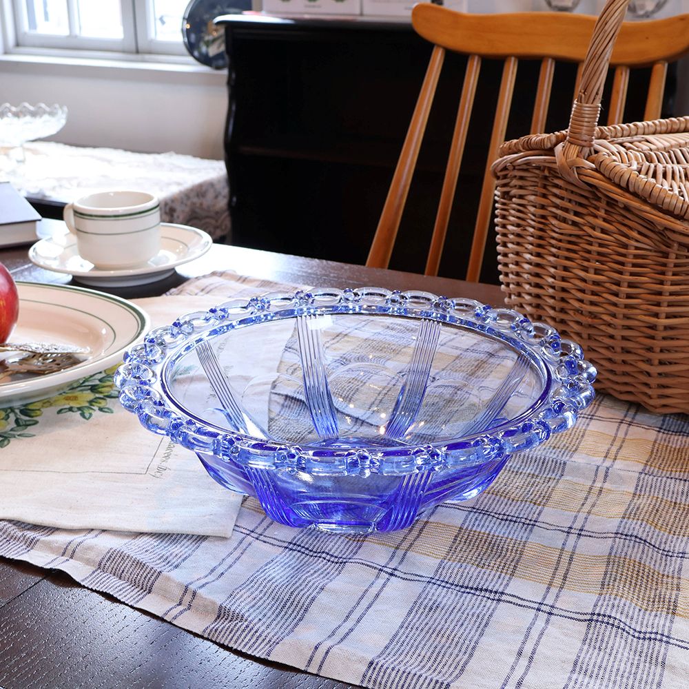 光に透ける涼やかなブルーは、透明なガラスアイテムとは一味違った印象を残します。